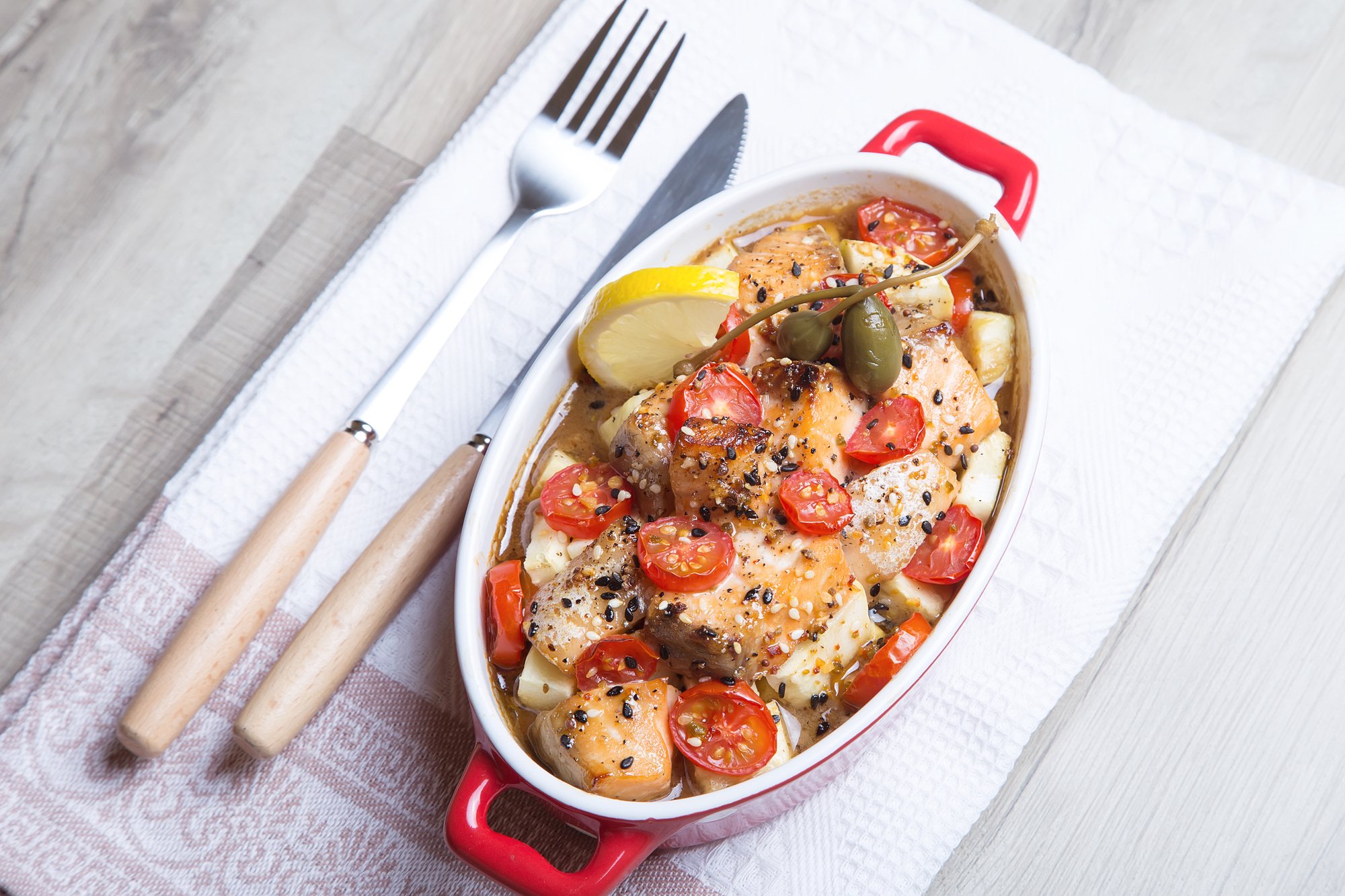 Авторка рецепта, пані Марина, готувала запіканку із філе сома, однак радить використати будь-яке рибне філе, попередньо звільнивши його від кісточок. Картопля й томати складуть гарну компанію рибі, й зроблять страву повноцінним обідом. Фантазуйте зі спеціями до смаку.