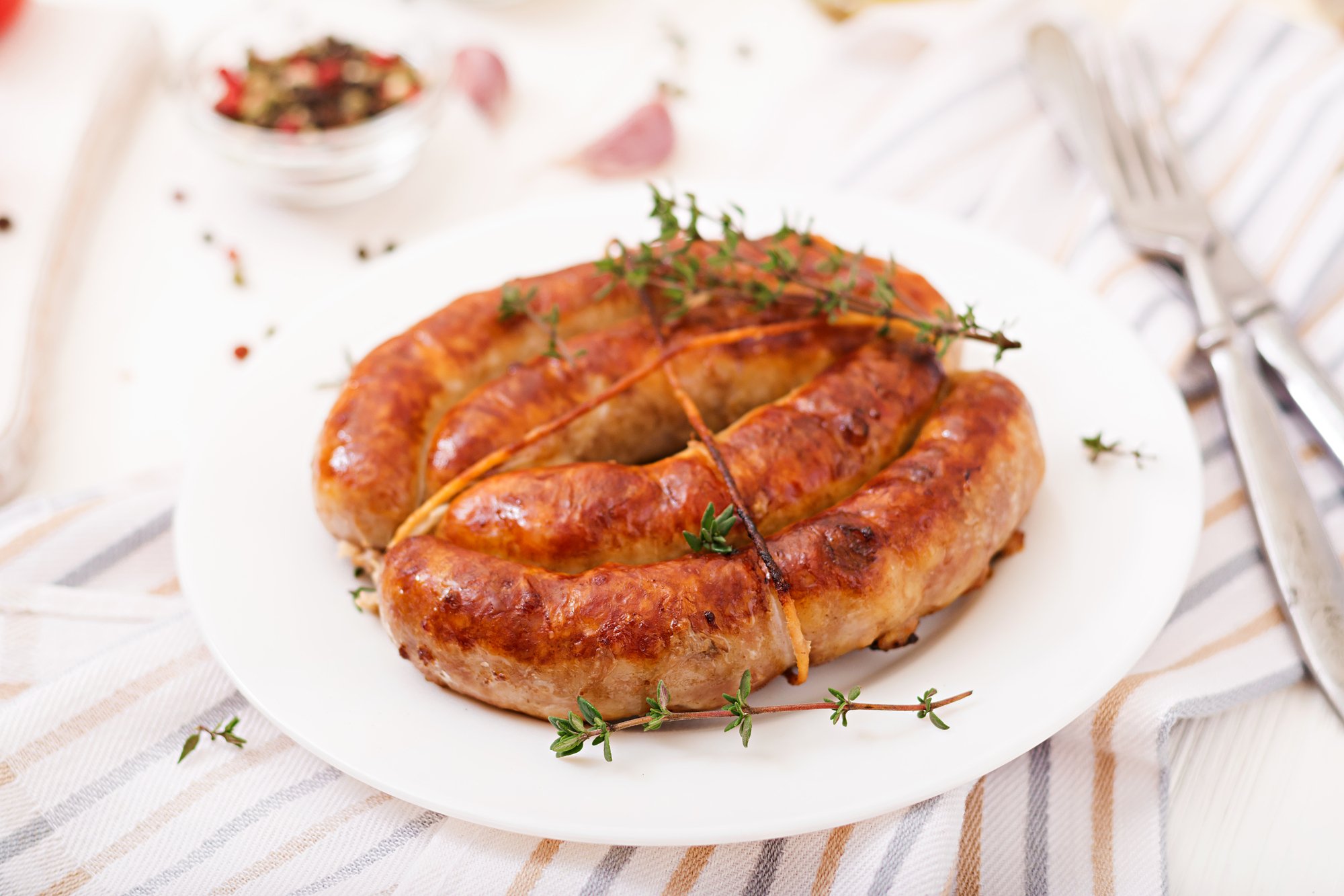 Якщо ви придбали ковбаски-напівфабрикати, радимо обсмажити їх у білому вині з часником і розмарином.