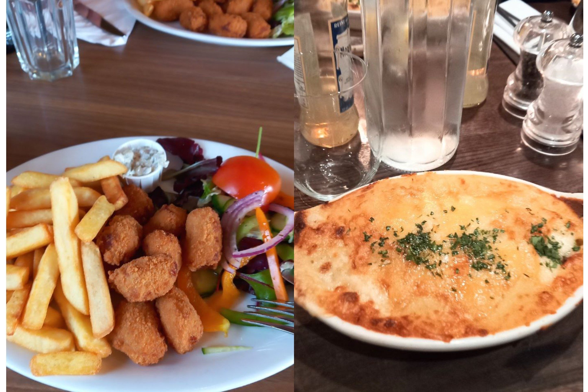 Але якщо завітати на ланч в паб або кафе — можна побачити за обідом цілі родини. SHUBA придивилася й замовила собі те, що помітила на сусідніх столах. Одного разу це були свіжі й неймовірно смачні креветки в клярі, з картоплею фрі й салатом, а іншого — ніжний картопляний гратен з лососем. Після ланчу з гратеном, нам залишалося лише поаплодувати англійським кухарям за цю неймовірно професійно приготовану страву.