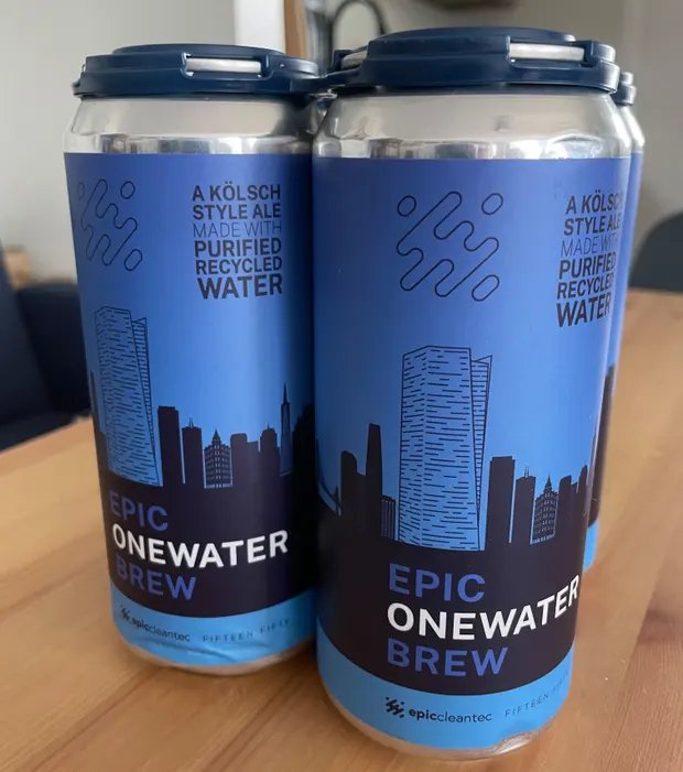 Каліфорнійська компанія з перероблення води — Epic Cleantec — представила пиво Epic OneWater Brew. У процесі виготовлення використовувалися стічні води з душових та пралень 40-поверхового багатоквартирного будинку в Сан-Франциско. У цьому будинку встановлено обладнання для збору та очищення води.