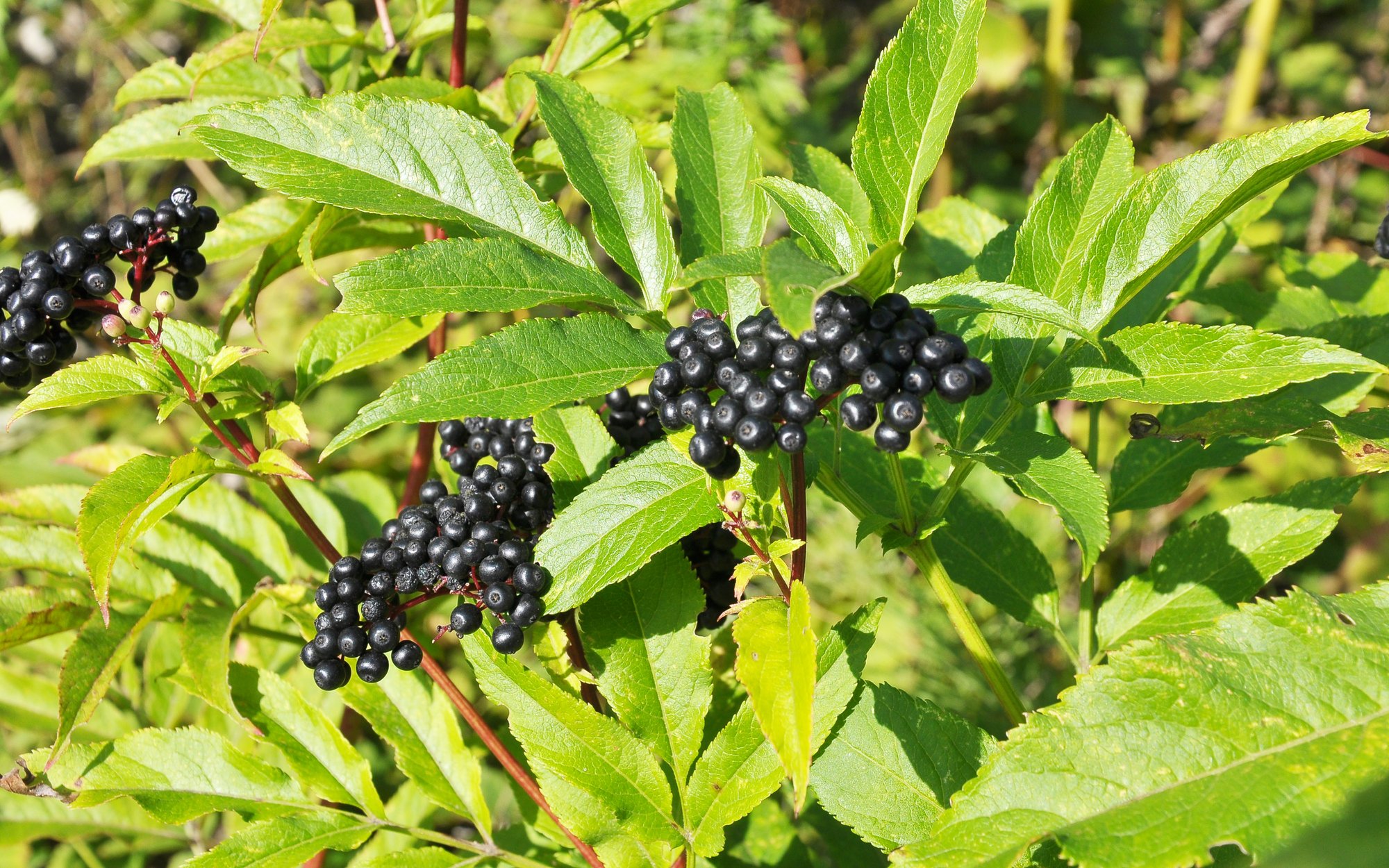 Бузина трав’яна — ця родичка чорної їстівної бузини отруйна. Росте на берегах водойм і в лісах. Чорні ягідки так і просять їх скуштувати. Але якщо ви це зробите, то можете заробити отруєння амигдаліном, який перетворюється на синильну кислоту. Висока доза амигдаліну може бути смертельною.