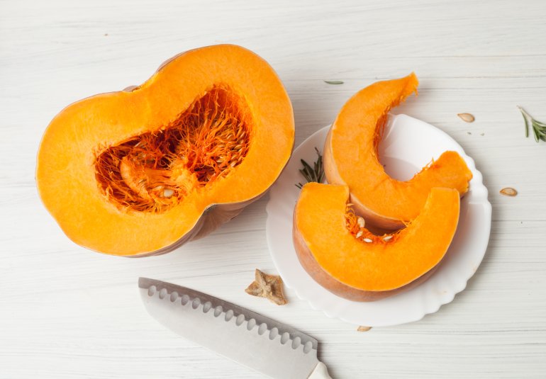 Цей овоч сприяє зниженню ваги, адже ви можете споживати більше, ніж інші джерела вуглеводів, такі як рис і картопля, але при цьому отримувати менше калорій. Гарбуз — джерело клітковини, яка допомагає приборкати апетит.