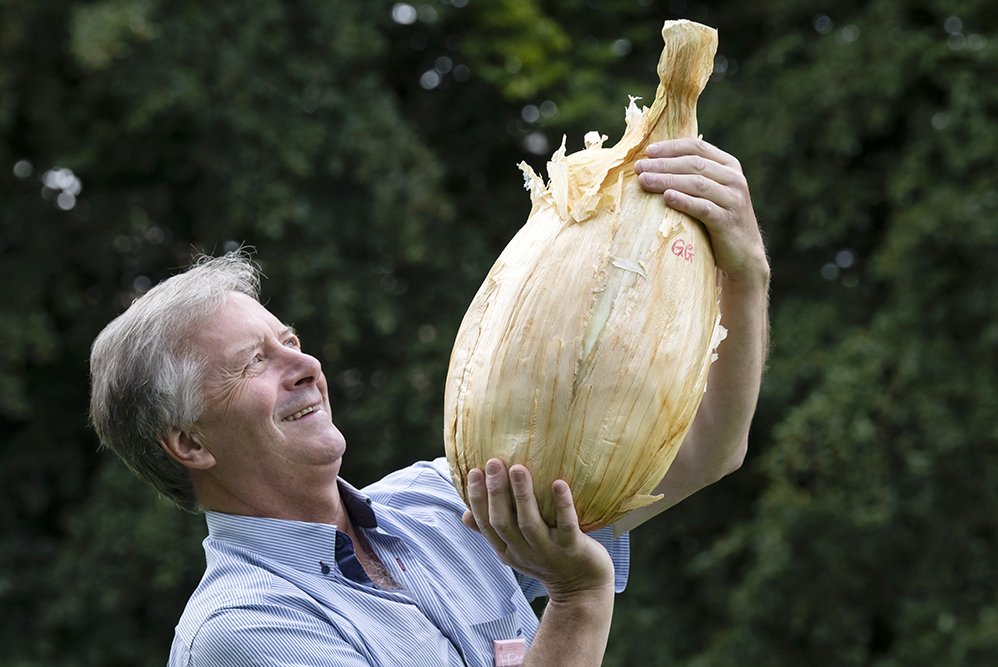 Найбільшого представника свого врожаю фермер Ґарет Ґріффін привіз на осінню виставку квітів та овочів у Харрогіті, Північний Йоркшир, Велика Британія. Вага цибулі склала 8,97 кг, вона виросла довгастої форми. Овоч вразив присутніх, як і кілька місяців тому величезний соняшник, його теж виростили у Великій Британії.