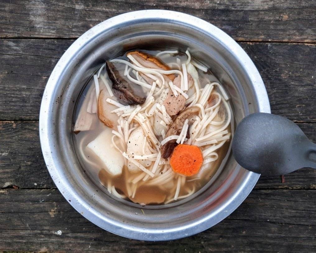 Ось тоді й став помічним той подарунок. Гриби, лашки, місцеві якісь овочі — картопля, цибуля, часник… Звісно, приправи. Якось все воно потрапило в казанок, і я приготував грибну поливку. Тим паче, що це страва традиційна, різдвяна. Її часто готують на пісну вечерю у Святвечір.