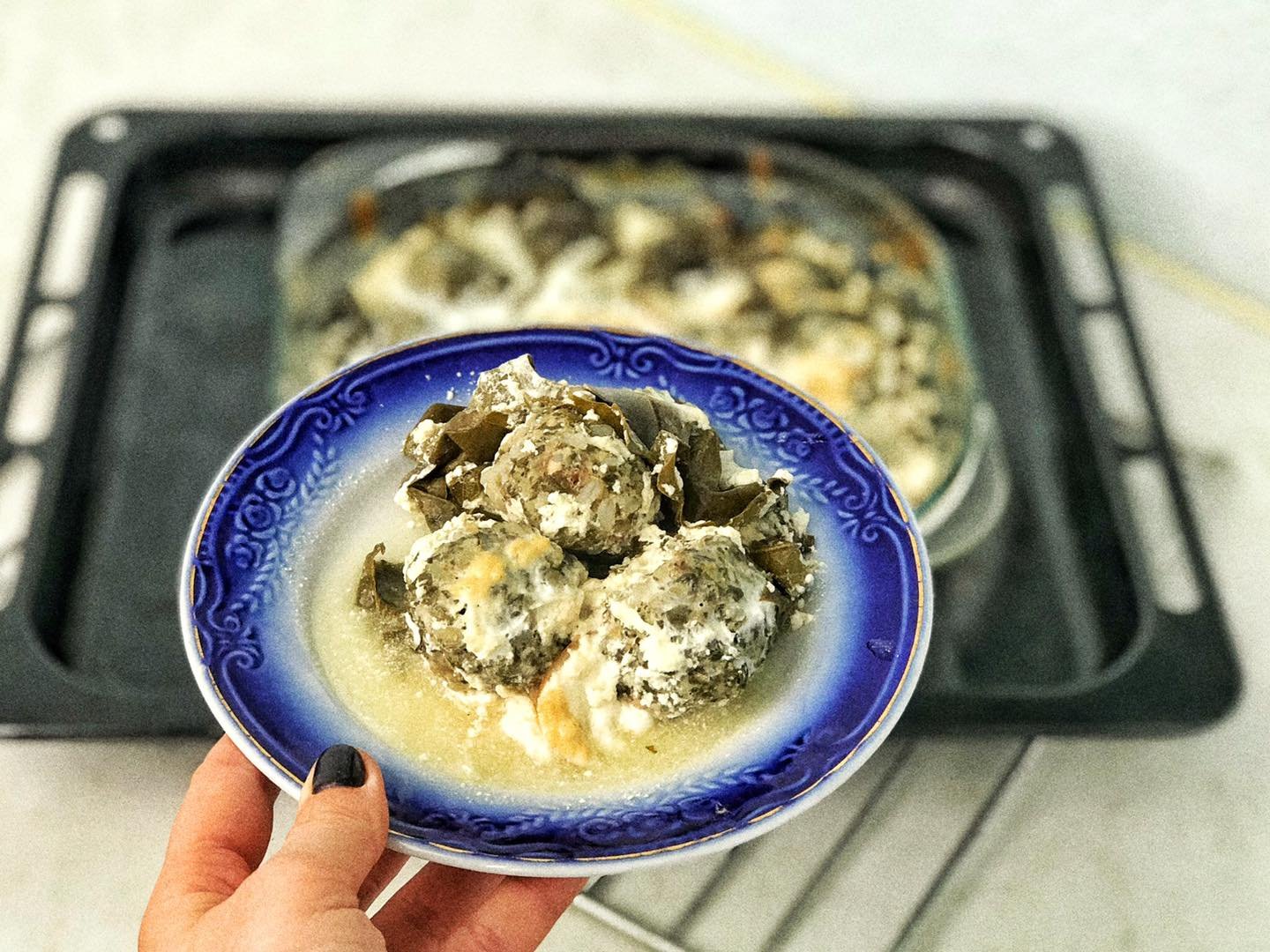 Рване листя тим часом сумно лежало в мисці. «Ну не викидати ж!» — подумала я й пішла гуглити ліниву долму. Варіанти, які вдалося наґуґлити, мене категорично не влаштовували: усі сайти пропонували робити її за принципом лазаньї, перекладаючи шарами фарш і листя. Мені такий варіант взагалі не сподобався, тому я вигадала свій власний рецепт лінивої долми.
