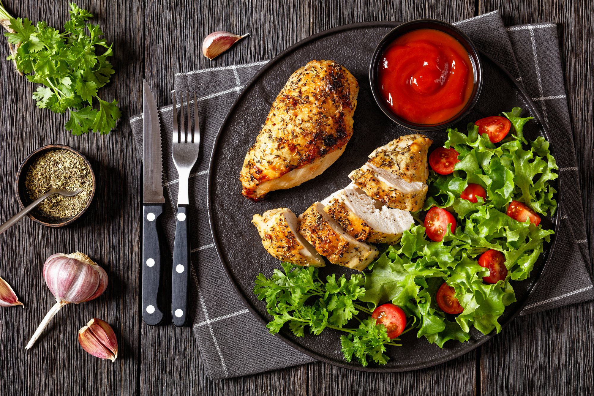 Запечена куряча грудка і салат — ідеальна вечеря Фото: Depositphotos