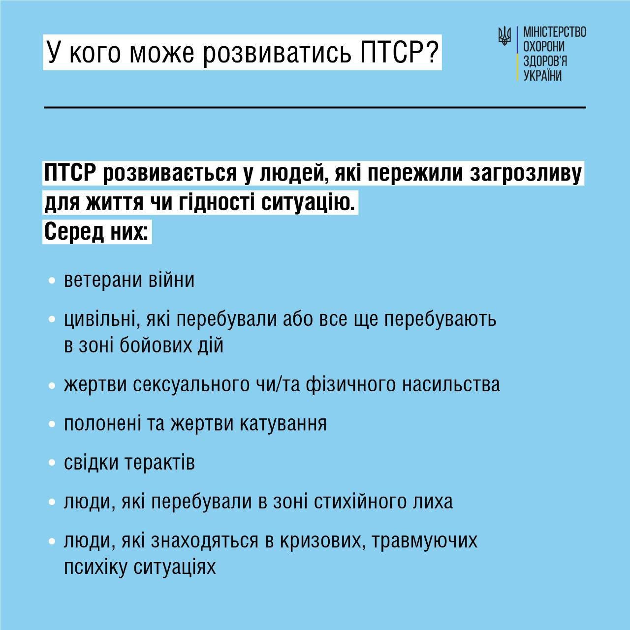 МОЗ інформує українців про прояви та лікування ПТСР — порушення психічного стану, що може розвинутися після травматичної події. Як відомо, за останні тижні ми пережили багато стресових ситуацій і травматичних подій.
