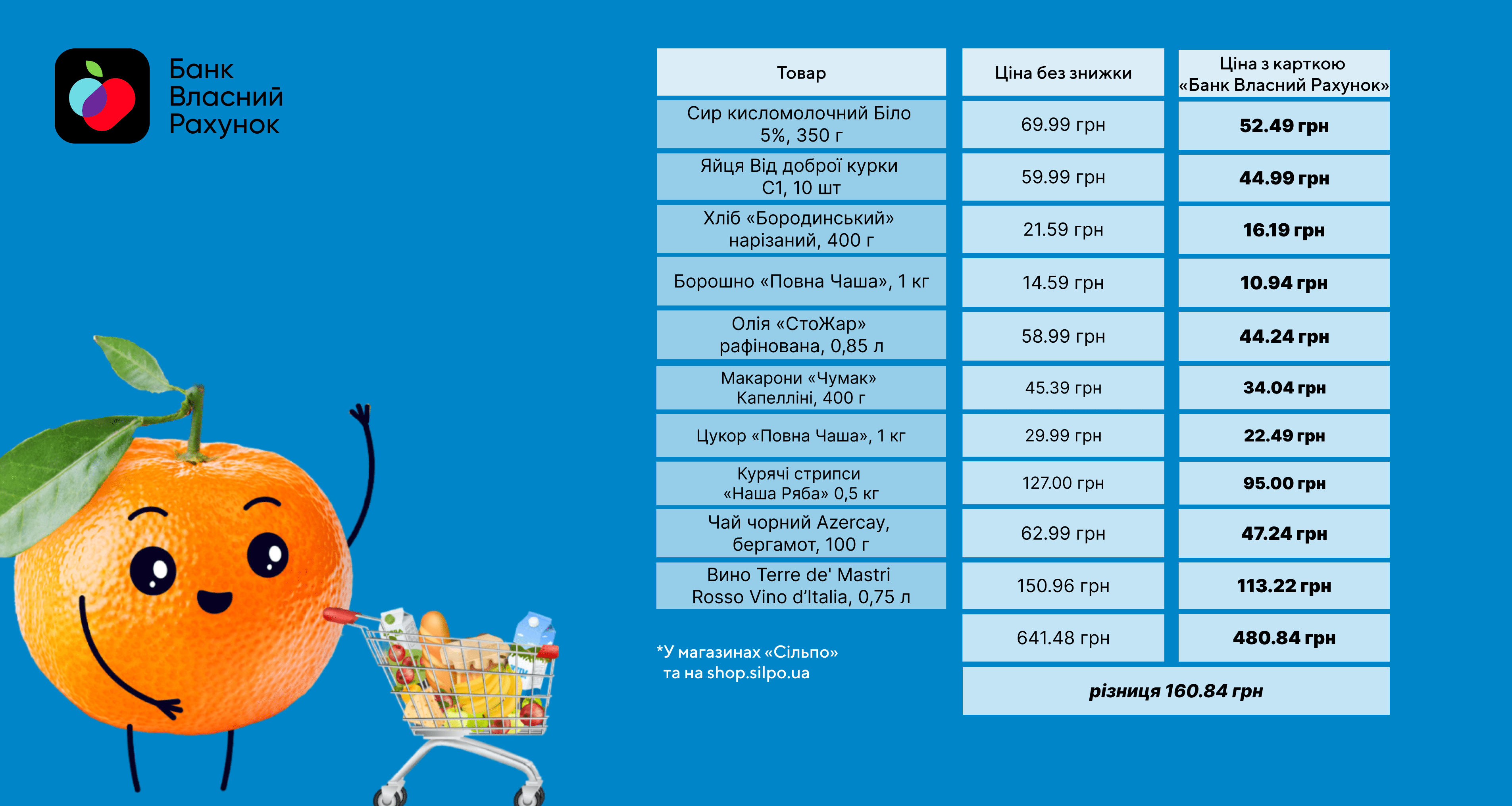 Якщо ви купуєте продукти в мережі супермаркетів «Сільпо», то могли бачити нові позначки на цінниках. Вони означають, що розраховуючись за цей товар карткою «Банк Власний Рахунок», ви економите до 25%.
