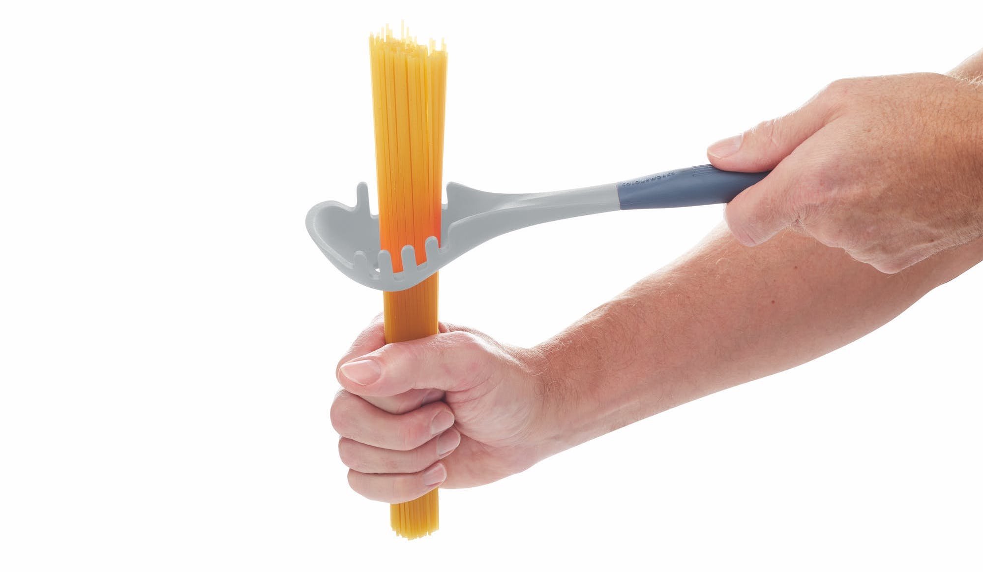 Не простої, а спеціальної ложки для спагеті — вона велика, має зубчики по краям і отвір посередині. Цей отвір і є вимірювач, розрахований на одну порцію.