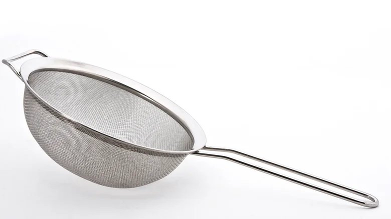Усе дуже просто. Треба викласти зварені жовтки в сито й провести по них опуклим боком ложки, протискаючи їх у миску.