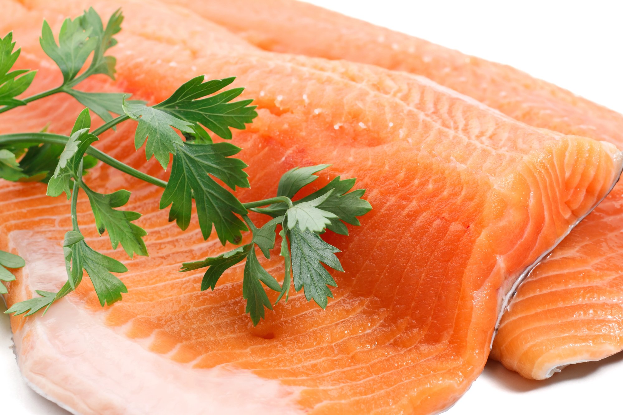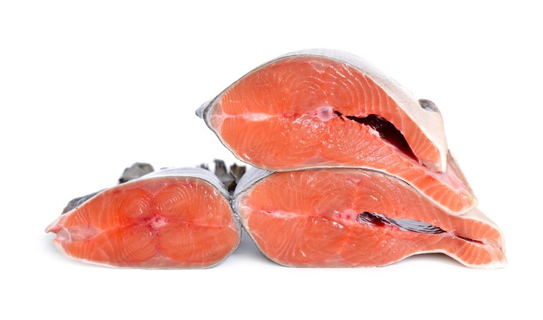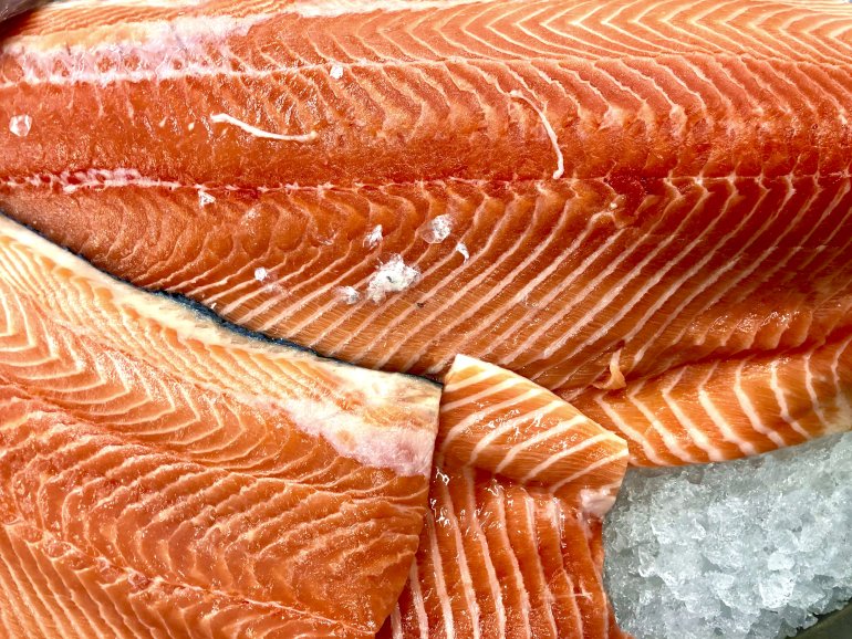 Оскільки сьомгу досить важко впіймати в дикій природі зараз, її вирощують на фермах. М’ясо сьомги соковите та трішки масне. З-поміж усіх червоних риб сьомга має найяскравіше філе з чітко видимими білими прожилками.