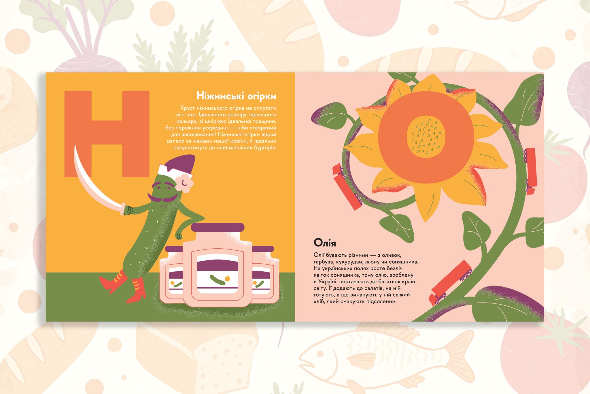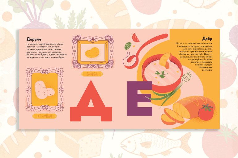 В абетці ви знайдете страви різних народів України. Серед них кримськотатарська, яку ми дуже любимо, але назву внаслідок російських викривлень вимовляємо й пишемо неправильно (здогадалися, про що мова? Авжеж, про чибереки). Ви прочитаєте, які страви внесено до переліку нематеріальної спадщини та яка різниця між зупою та юшкою.