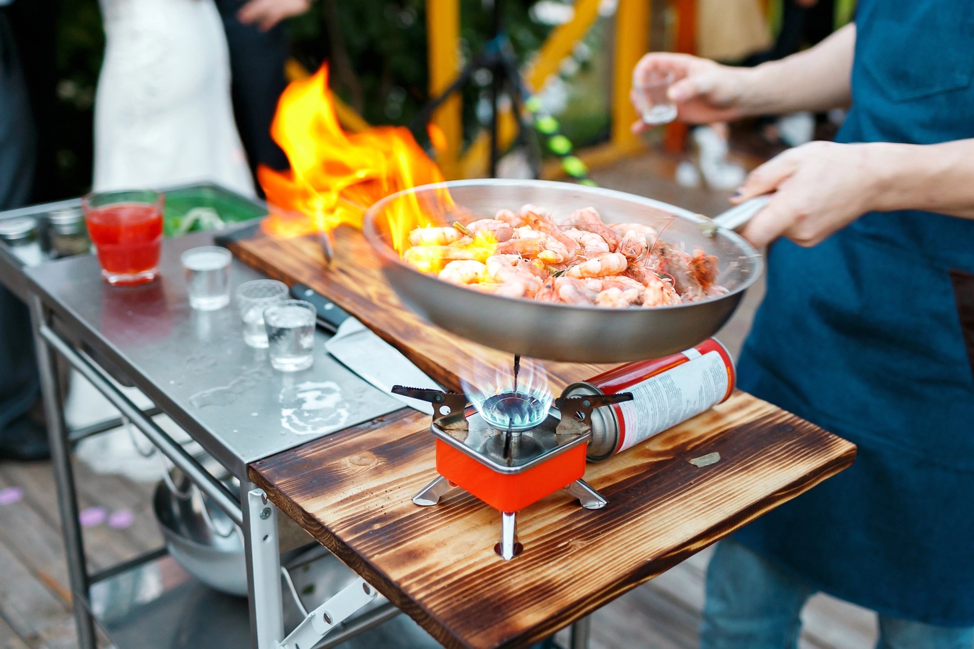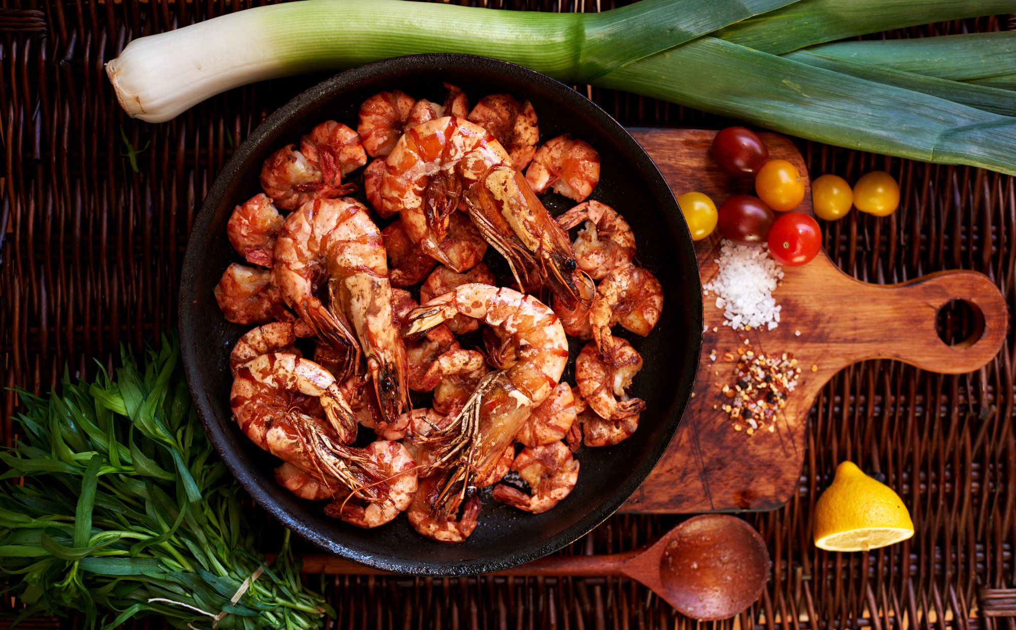 Якщо хочеш, щоб креветки мали такий смак, ніби вони приготовані на вогнищі, — обсмаж їх на сковороді, а відтак полий спиртом чи алкогольним напоєм і підпали алкоголь за допомогою спеціального пальника. Найкраще це зробити так, як показує шеф-кухар Юрій Ковриженко на відео про тигрові креветки, що палають.