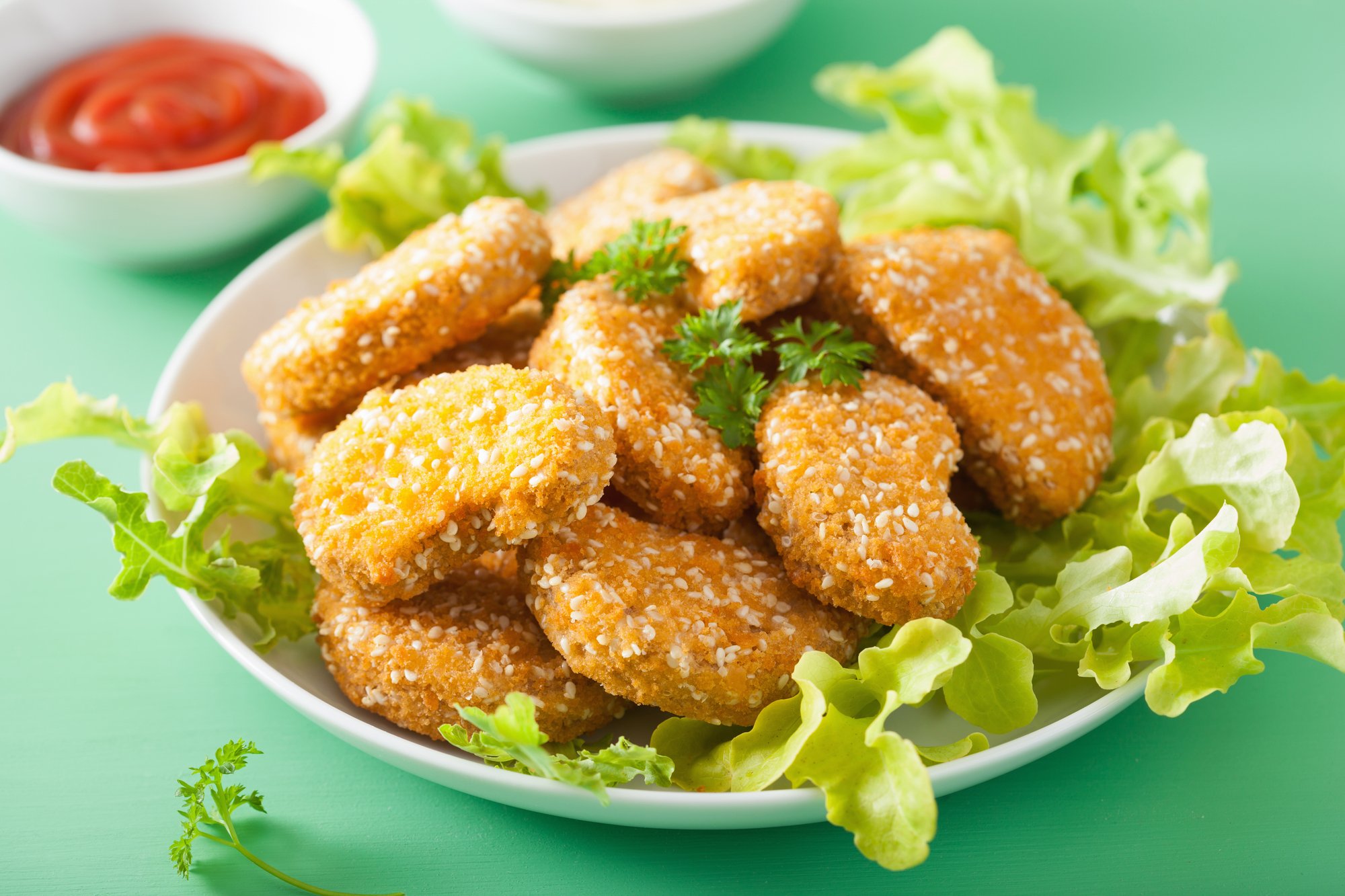 Рослинна «курятина» — ще один хіт у світі замінників м’яса. Є котлети, відбивні, шніцелі, нагетси, стріпси — усе з білкових інгредієнтів (соя, горох), які нагадують справжнє м’ясо.