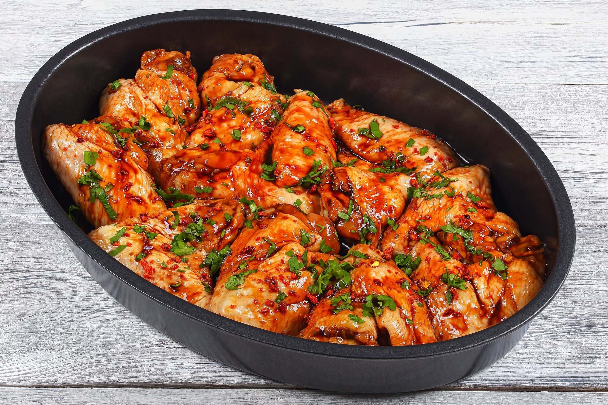 Крильця з ананасом готуємо за температури 180°C, крильця з медом і лимоном — 190°C, а крильця по-техаськи — за температури 220°C.