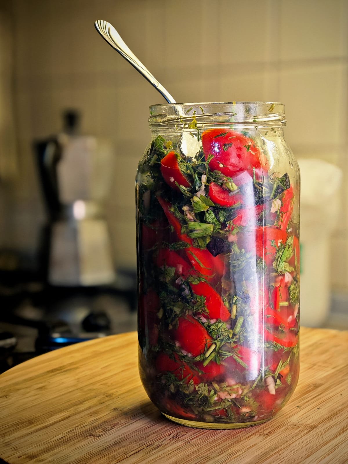 Ви побачите, скільки соку вони пустять — тож посудина має бути достатньо великою. Розсіл той неймовірно смачний, і ви точно не захочете втратити жодної його крапельки! У холодильнику помідори можуть зберігатися близько тижня, повільно продовжуючи ферментацію при нижчій температурі. Але, якщо чесно, зникають вони максимум за 2–3 діб, який там тиждень!
