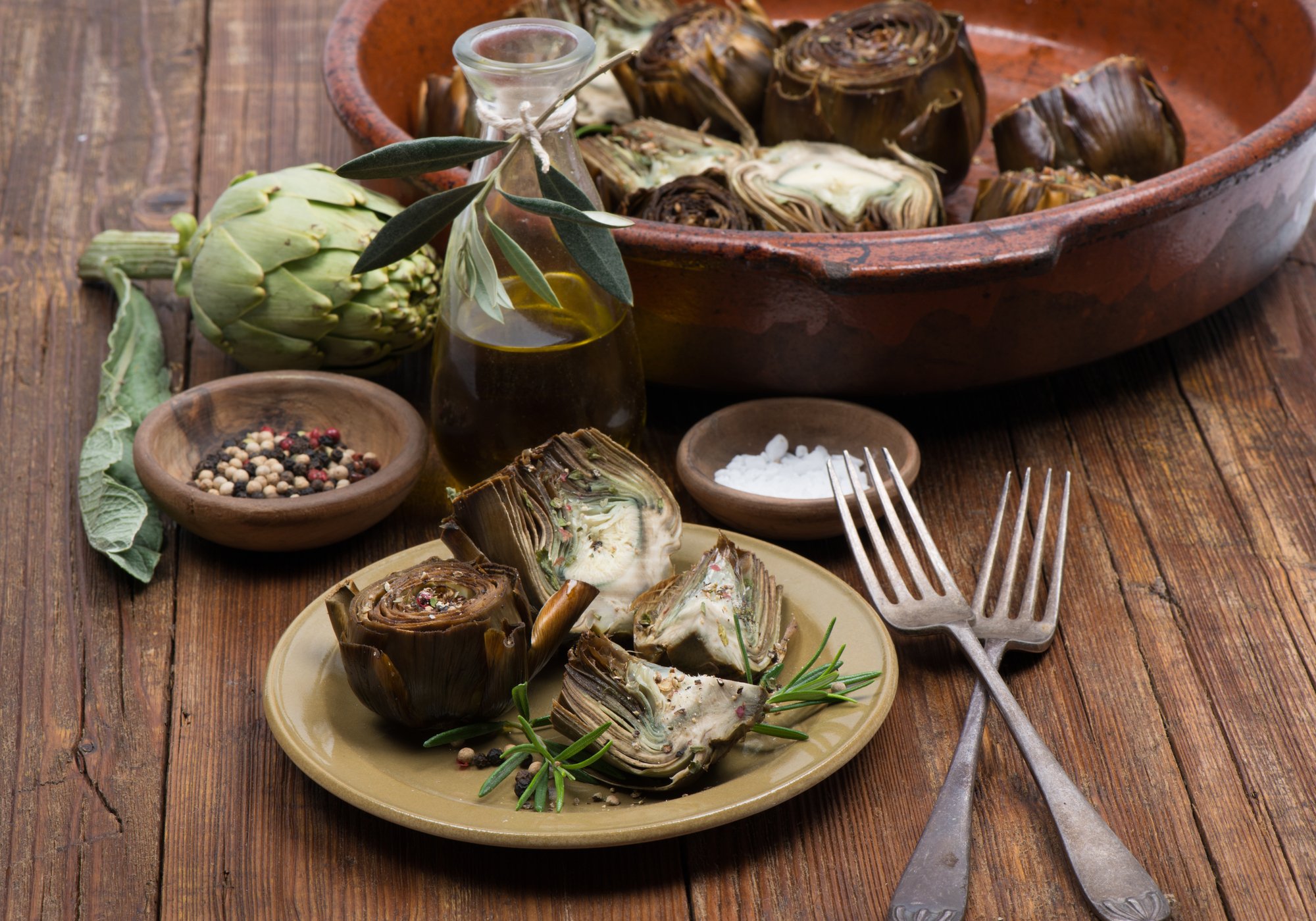Варто придбати для приготування червоні солодкі апельсини та свіжі артишоки. Подавайте салат з білим або червоним сухим та легким грибним паштетом.