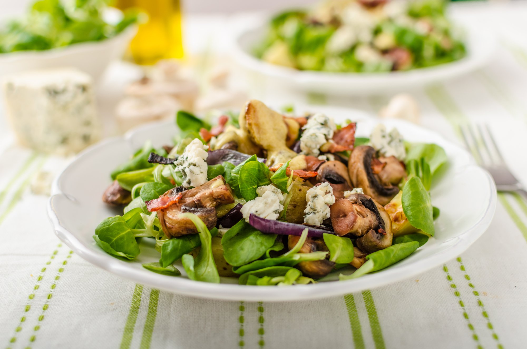 Цей вишуканий салат не можна залишити без уваги. Ви можете собі уявити поєднаня солодкої карамелізованої цибулі, гірчичної заправки, м’якого блакитного сиру та зелені? SHUBA уявила та побігла на кухню, де відтворила цей шедевр, який дуже недовго стояв на столі.