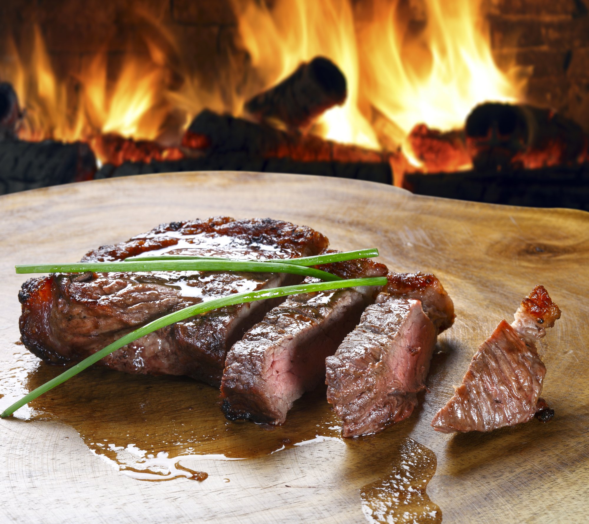 Кислотність напою знижує жирність яловичини. Важливо, щоб мʼясо було середнього просмаження, подавайте до нього брют.