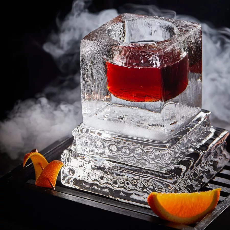 Напої змішали у виготовленому на замовлення акриловому контейнері, його помістили в лід.