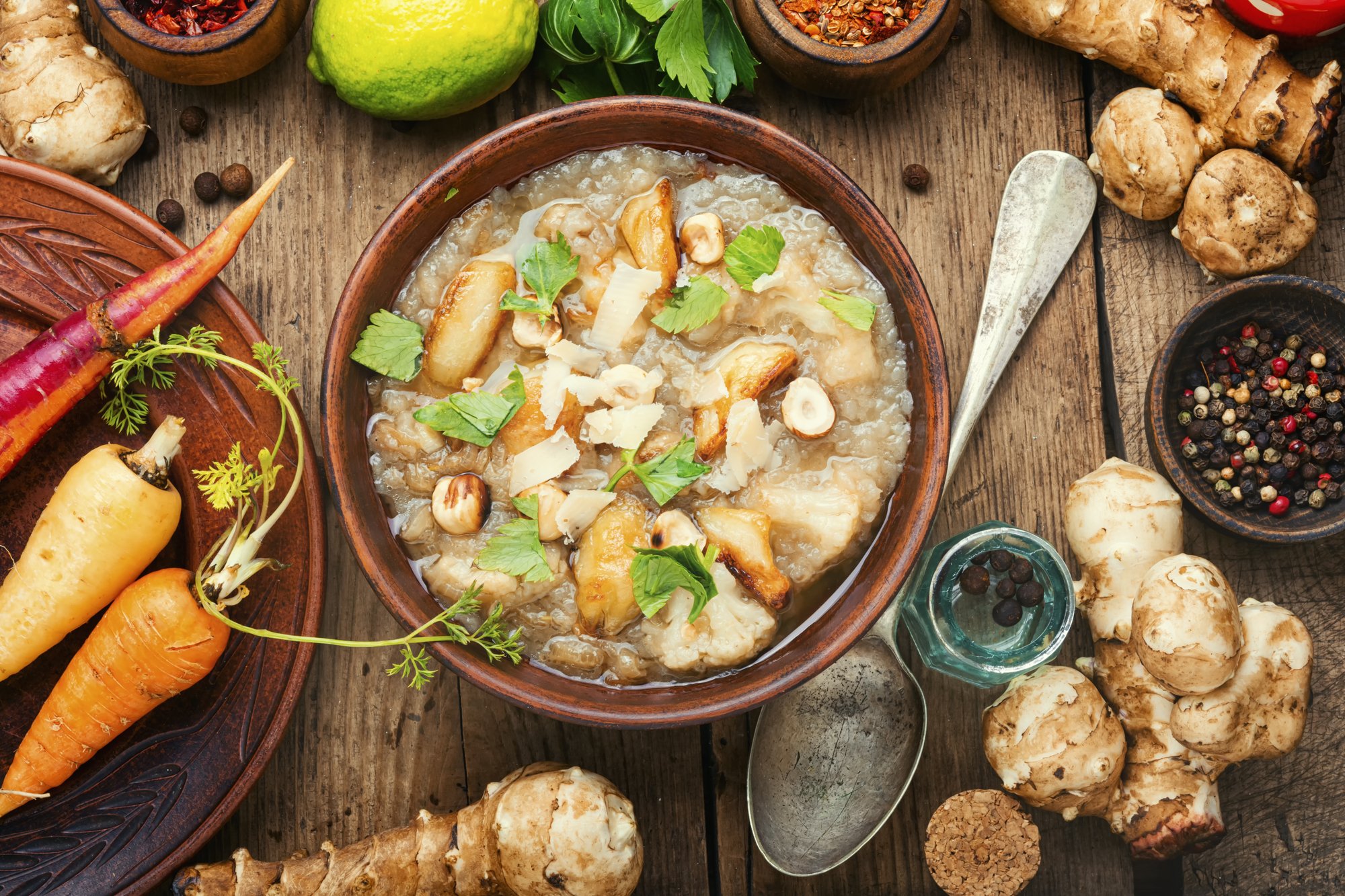 Якщо бульба топінамбур — для вас ще не зовсім звичний продукт, радимо використати цей рецепт і дізнатися, чи до вподоби вам ця універсальна рослина. Структура топінамбура соковита і ніжна, а його смак нагадує картоплю, але трішечки солодше. Такі властивості для супу — саме те, що треба!