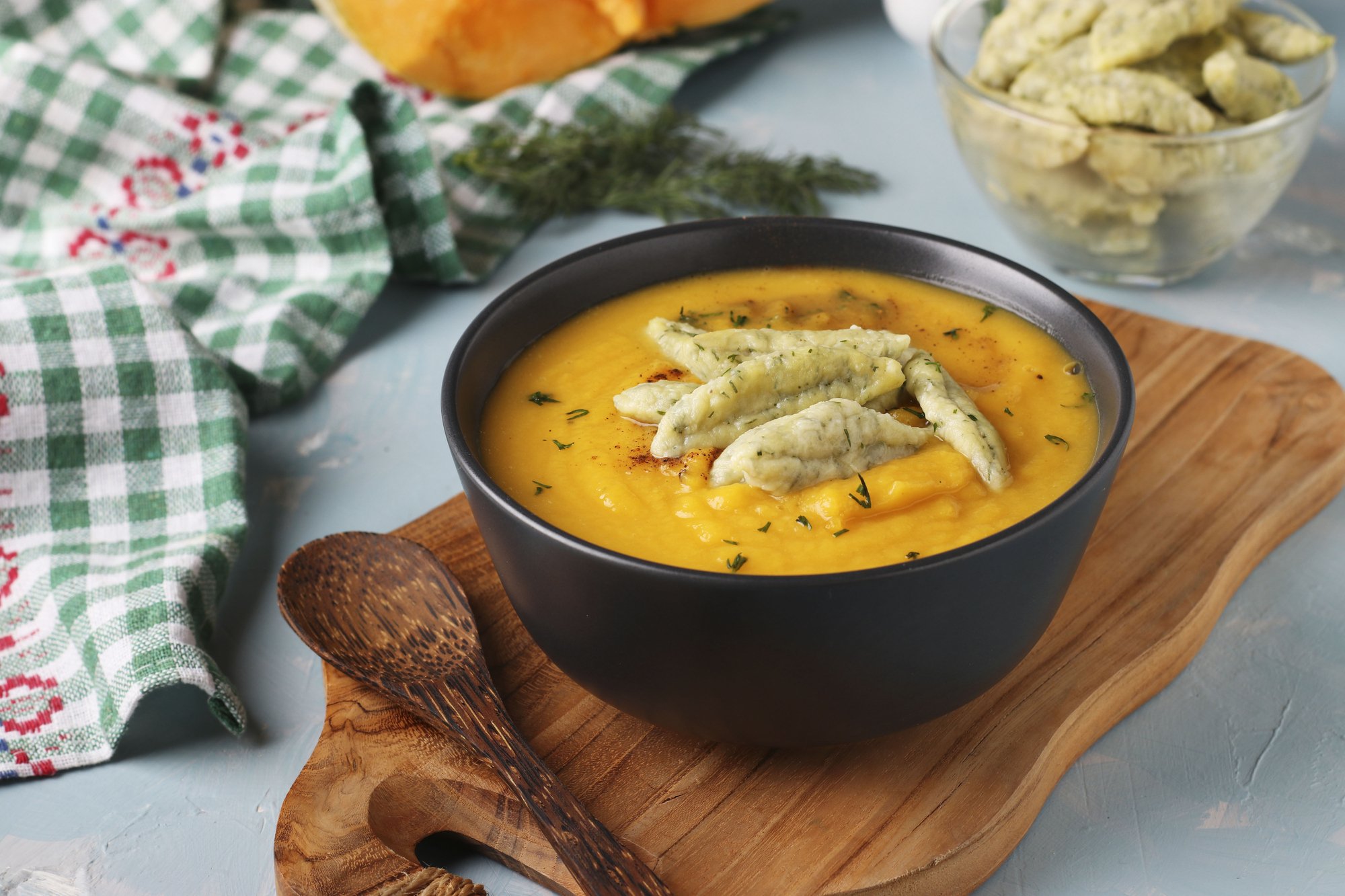 Легкий овочевий суп із додаванням галушок — це страва для родинного обіду у неділю. Суп готується з гарбуза з морквою і цибулею, за його пікантність відповідає часник з невеликою кількістю молотого перцю, а за поживну частину — галушки з твердого сиру. Важко собі уявити, що такий ансамбль може не викликати фурору. Закріпити успіх вам допоможуть фрикадельки з медом і часником!