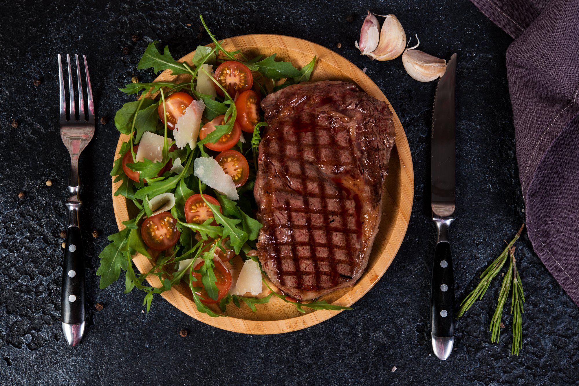 Стейк з руколою і сиром пармезан