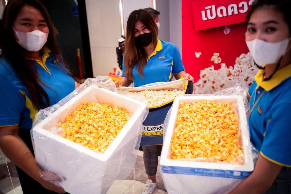 Акція полягала в наступному — ви приходите до кінотеатру зі своєю тарою. Вона може бути будь-якою. Головне, щоб ви змогли забрати свій попкорн. Попкорн не є безкоштовним. Вартість 199 батів або 208 гривень. Загалом витратили 50 мішків кукурудзи.