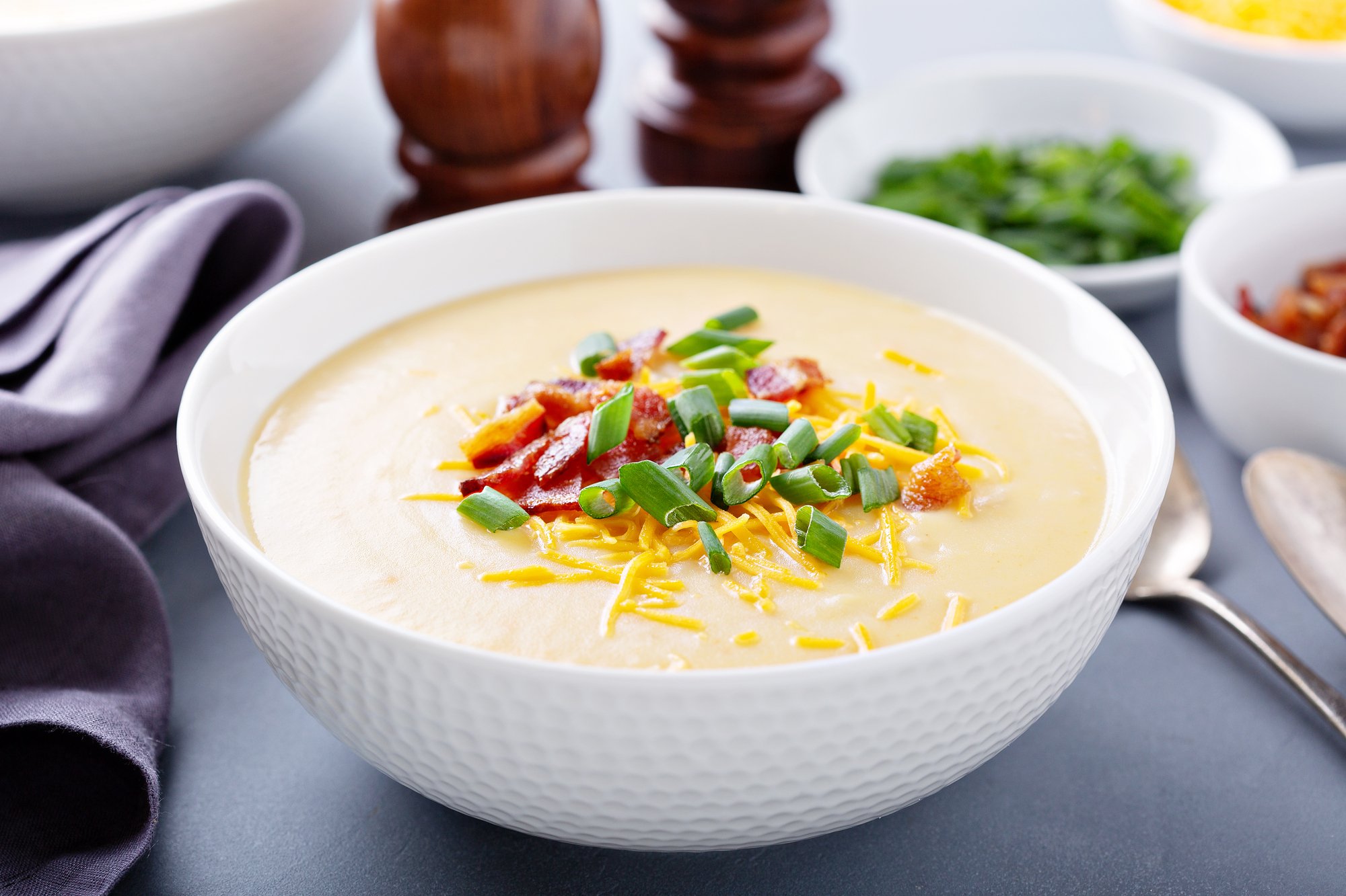 Радимо приготувати вершковий крем-суп з картоплею. Він має гладку текстуру і всього 5 інгредієнтів у складі: вершки, картоплю, цибулю й овочевий бульйон.