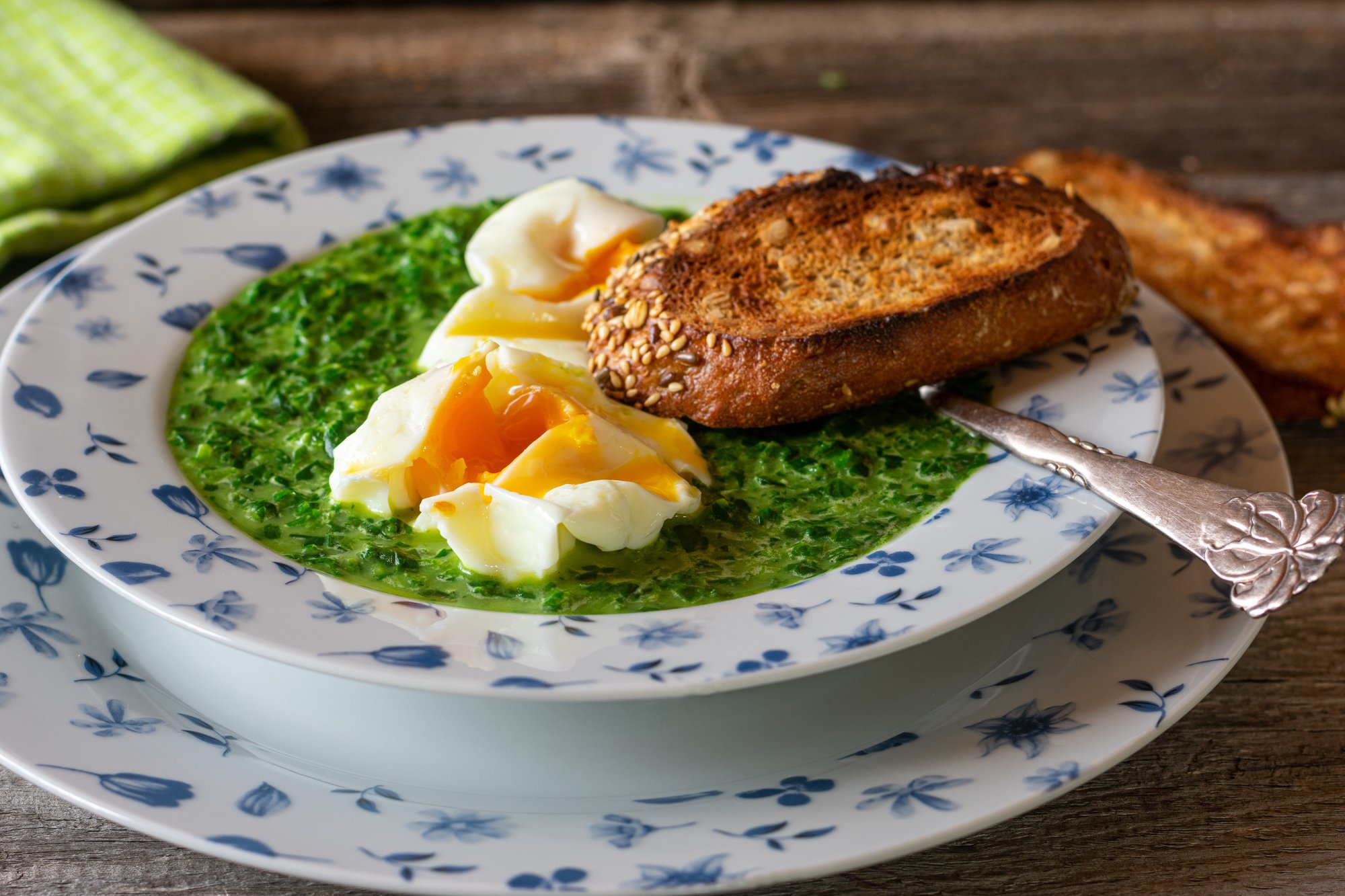 Чудовий сніданок чи обід зі шпинатом у молочно-вершковому соусі з яйцями пашот додасть енергії і сил на весь день. Особливо, якщо вночі був надзвичайно багатий та ситний стіл.