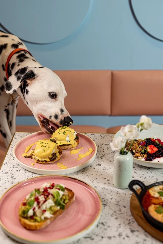 Крім смачної їжі та напоїв для людей, у кафе є варіанти для собак — навіть післяобідній чай із бутербродами та фруктовим пирогом.