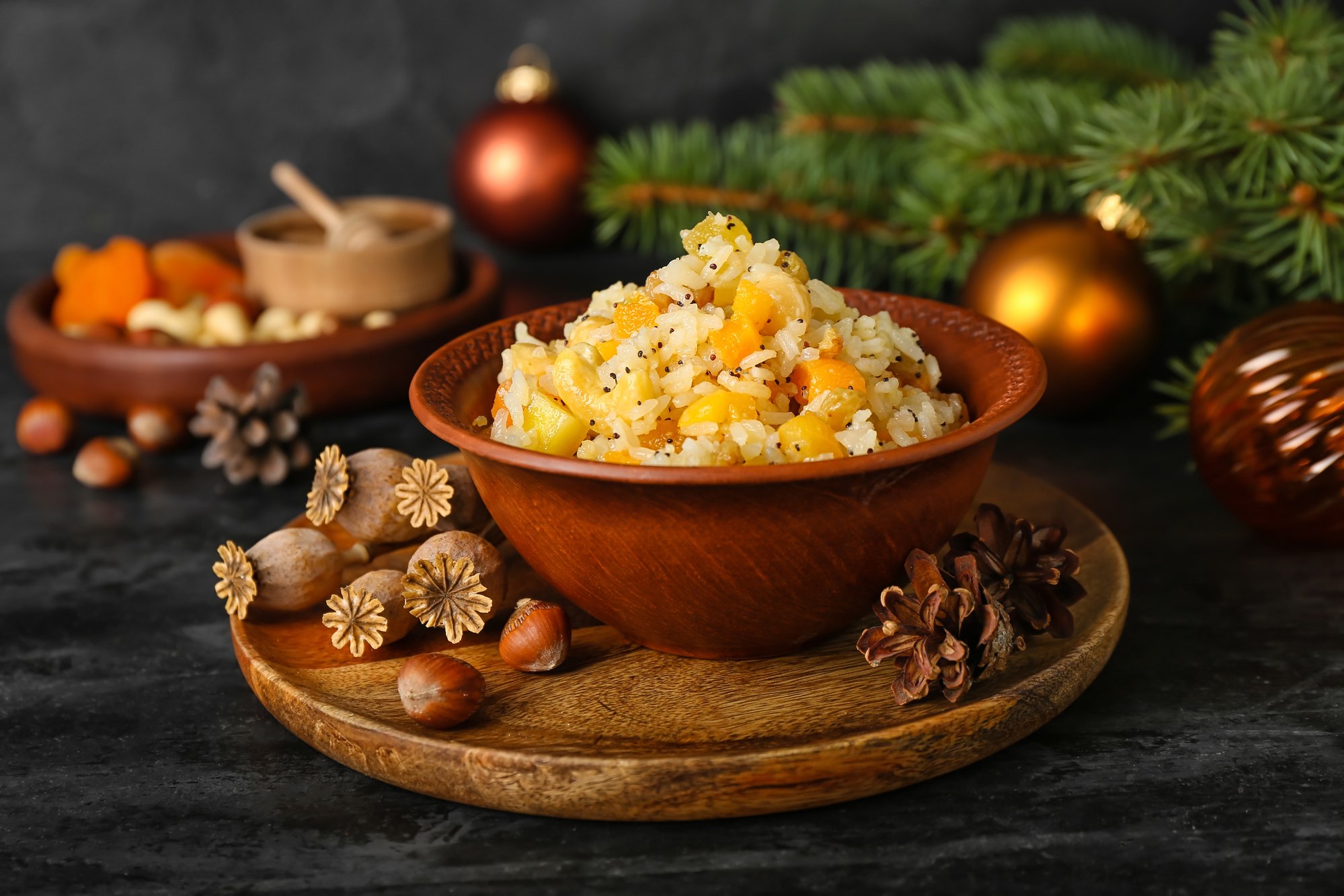 На столі обов’язково повинна бути багата кутя з горіхами, сухофруктами, медом, цукатами й іншими інгредієнтами, на бажання.