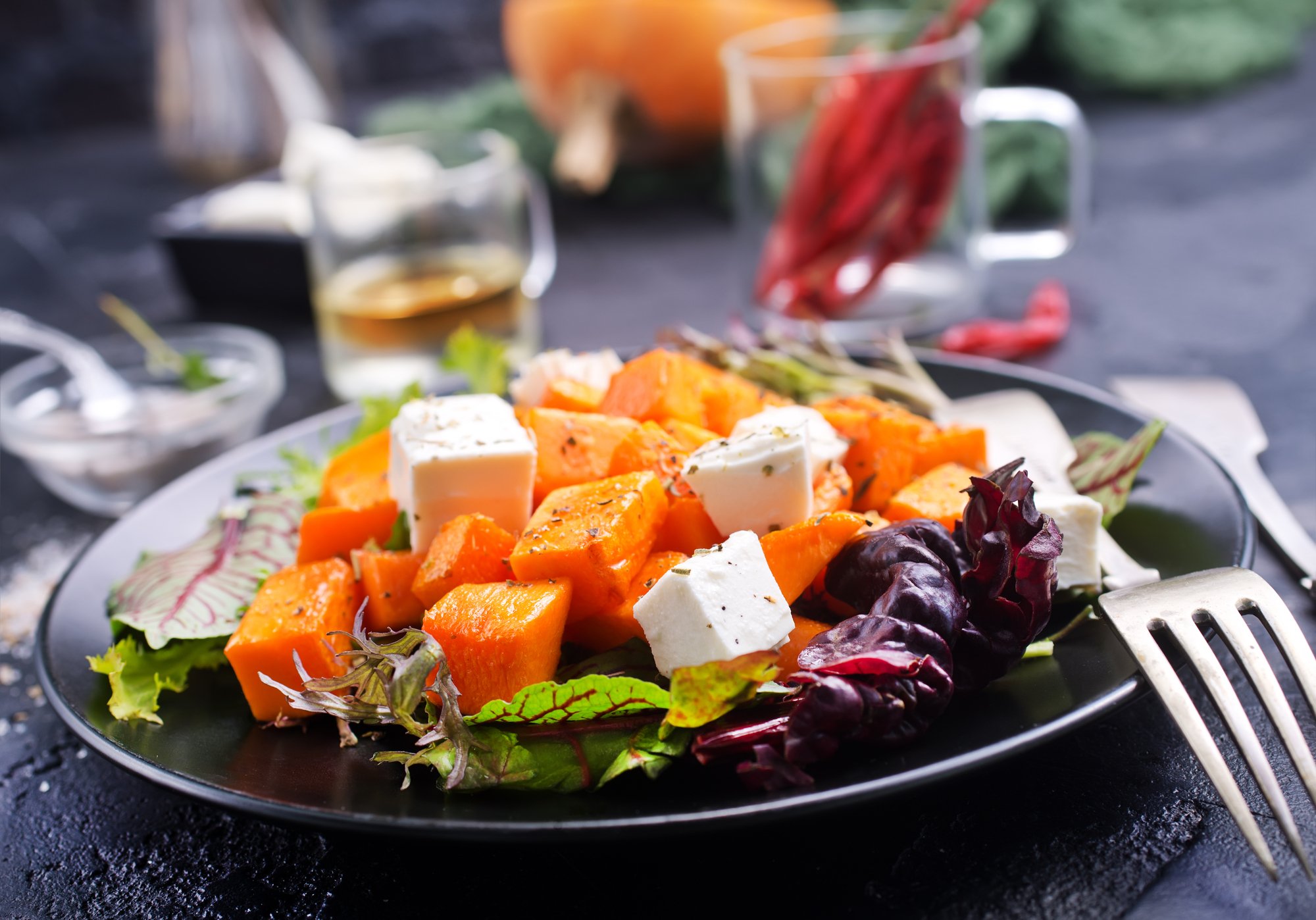 Рецепт теплого салату з гарбузом та яблуками
