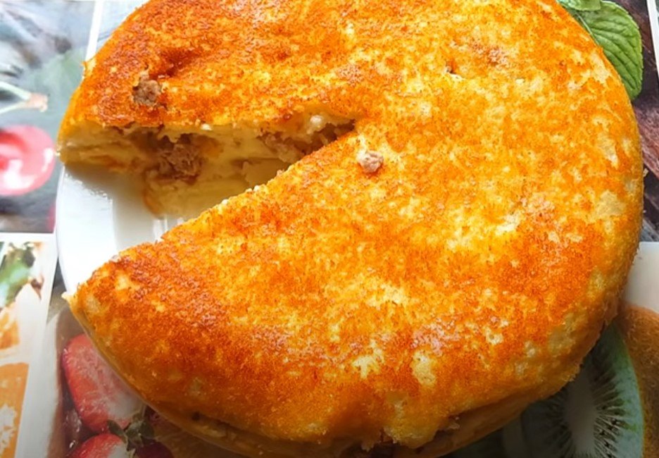 Якщо не хочеться готувати складні страви, варто спробувати цей лінивий пиріг з м’ясним фаршем. Просто змішайте усе для тіста у мисці, додайте фарш та випечіть у духовці.