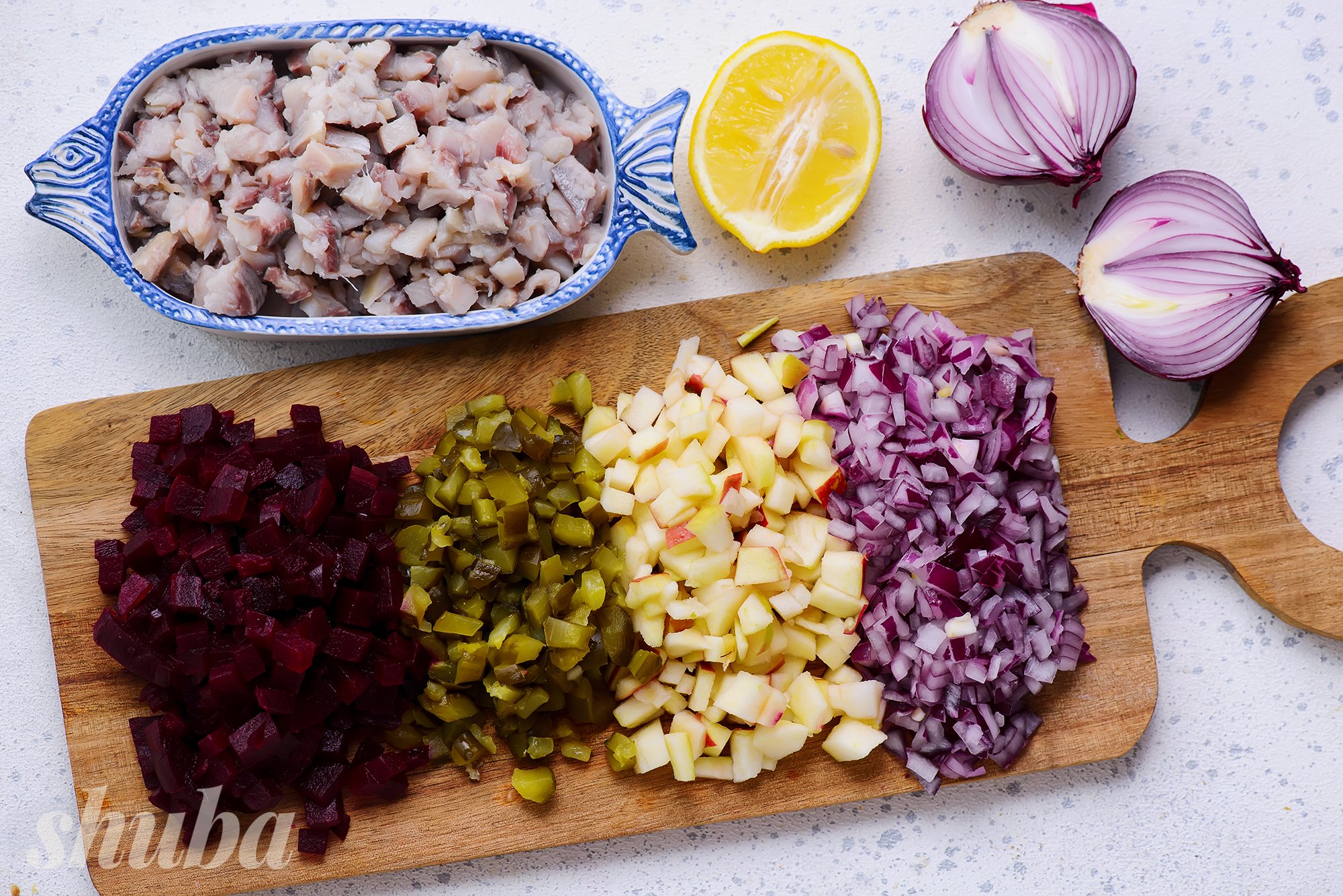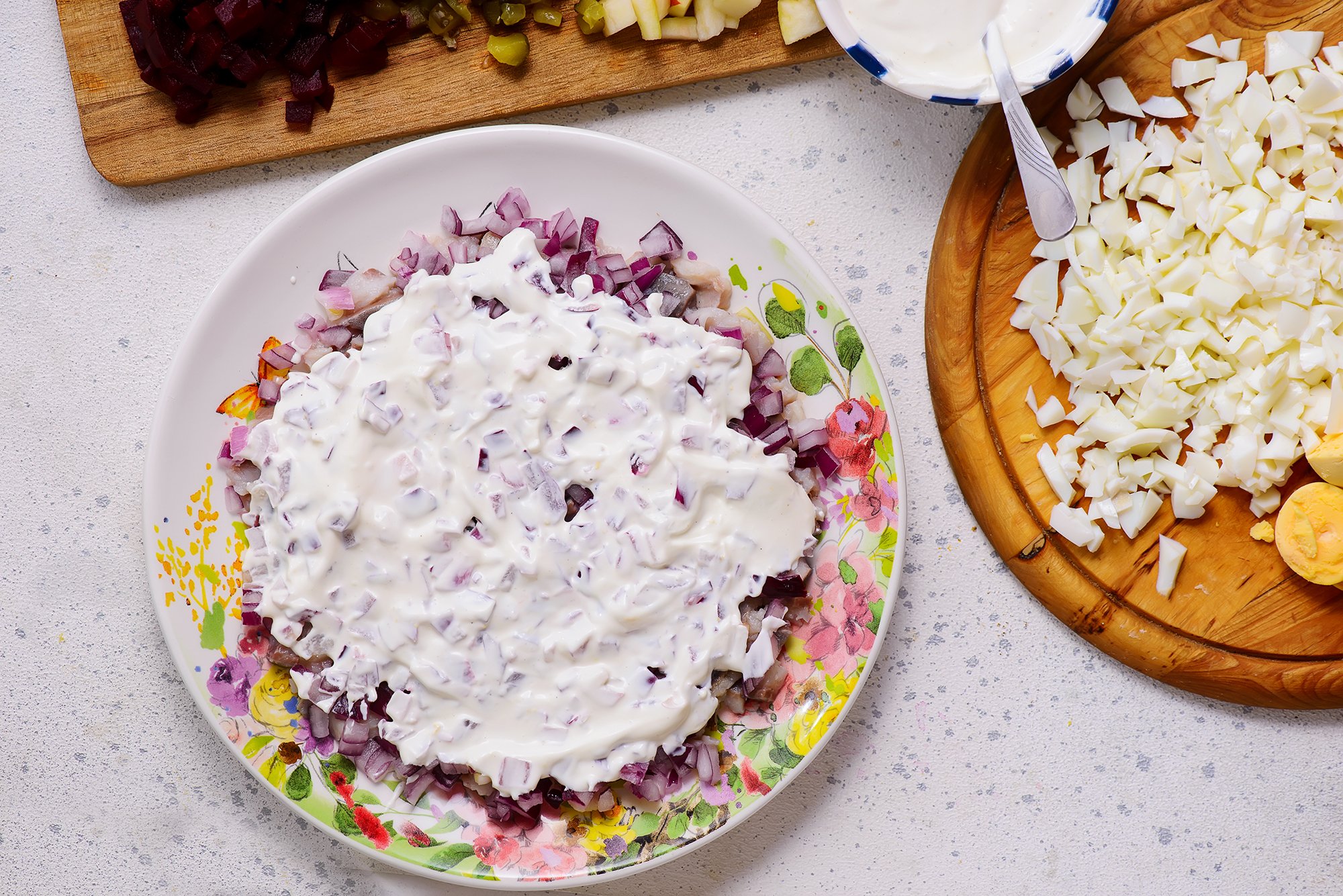 Подавати салат радять із запеченою картоплею, а SHUBA підказує, як приготувати майонез самостійно.
