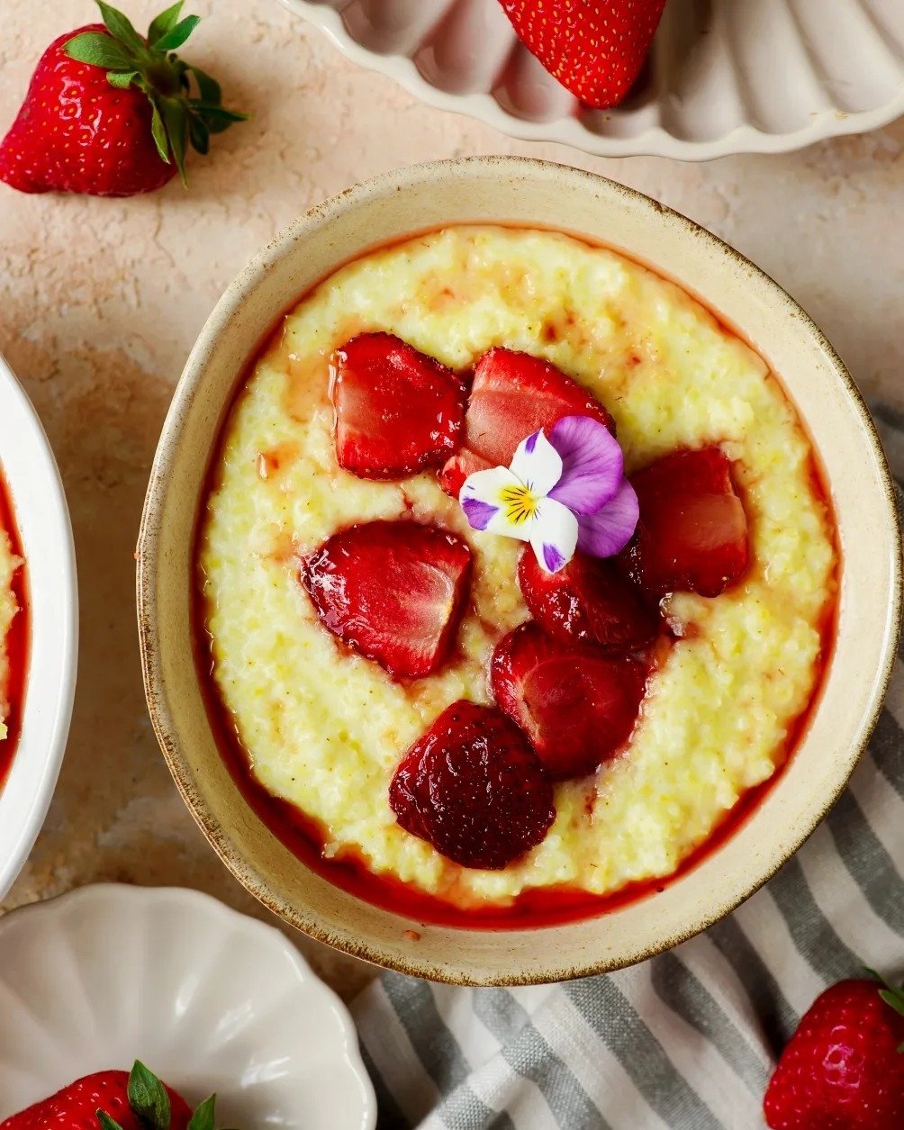 Пшоняна каша може бути дуже ніжною, вершковою, з кремовою текстурою. А якщо додати до неї запечену полуницю, перед таким сніданком не встоїть ніхто!