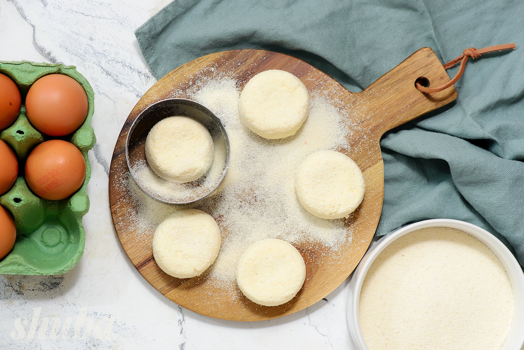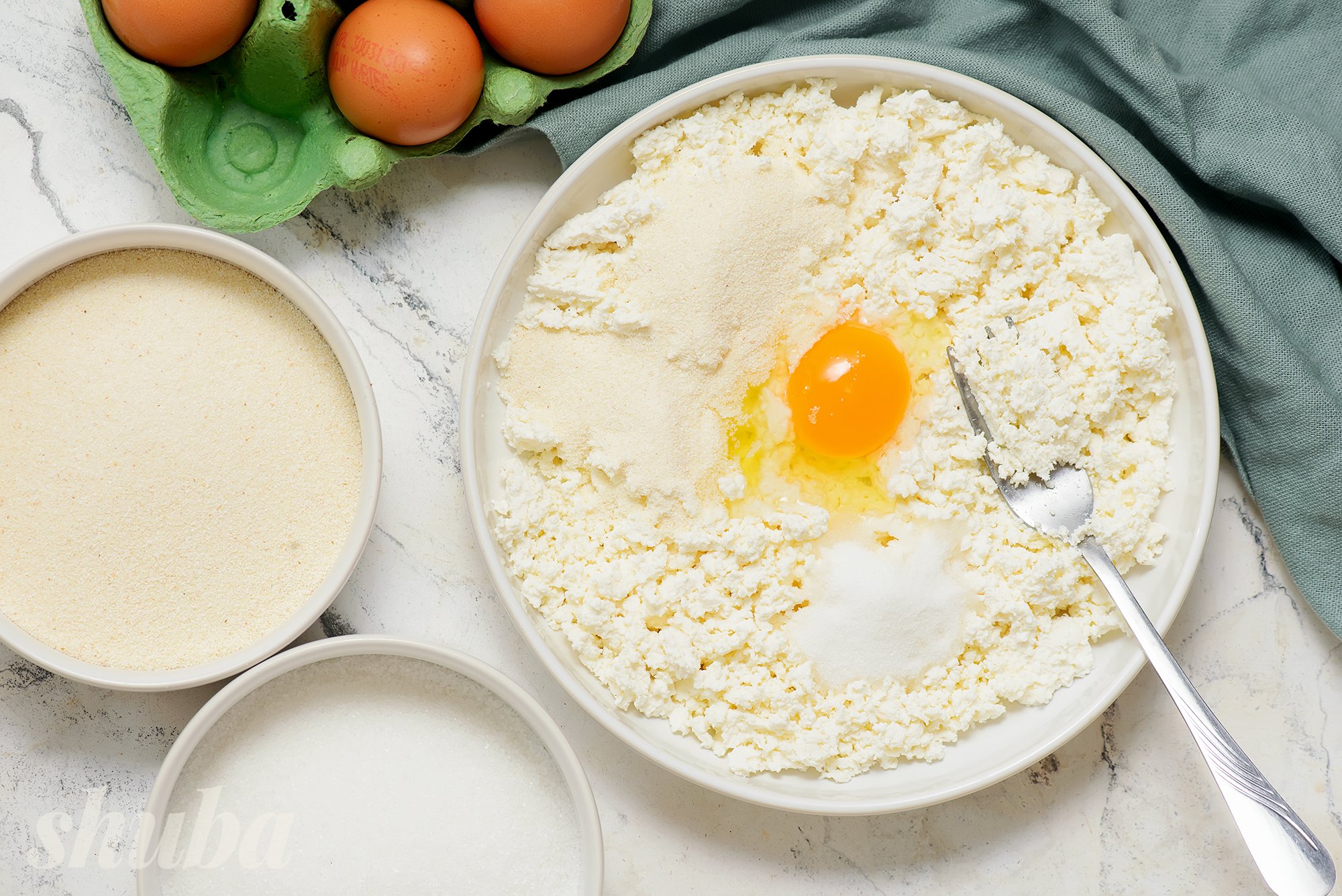 - ми замішуємо тісто на цільнозерновому борошні, також можна готувати сирники з вівсяними пластівцями;
