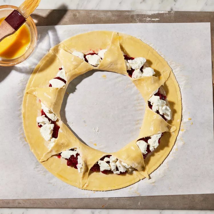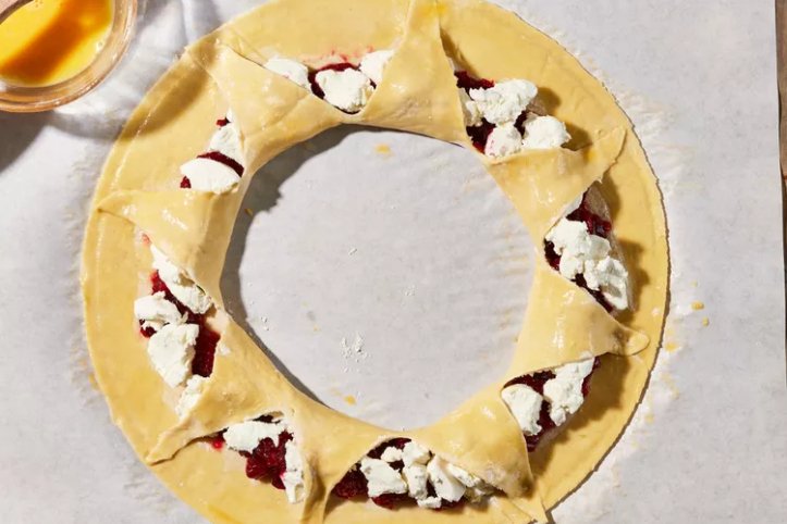 Викладіть журавлинну суміш навколо зовнішнього боку центрального кола, залишаючи близько приблизно 2 см по краях тіста.
