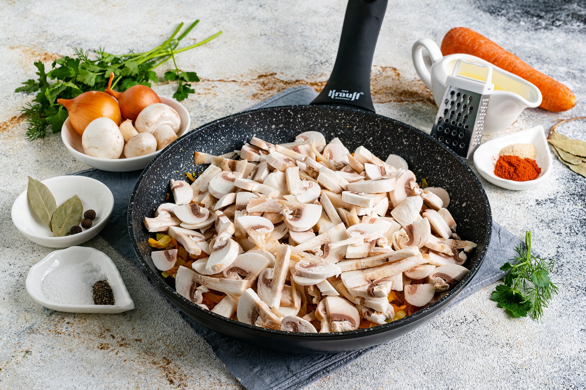 Завдяки грибам перша страва виходить особливо смачною та ароматною. Щоб зробити суп з печерицями ситнішим, додай тонку вермішель, обсмажену на сухій сковороді до золотистого відтінку. Після термічної обробки вермішель не набухає та не розварюється в бульйоні. Суп навіть наступного дня зберігає свою консистенцію і залишається прозорим.