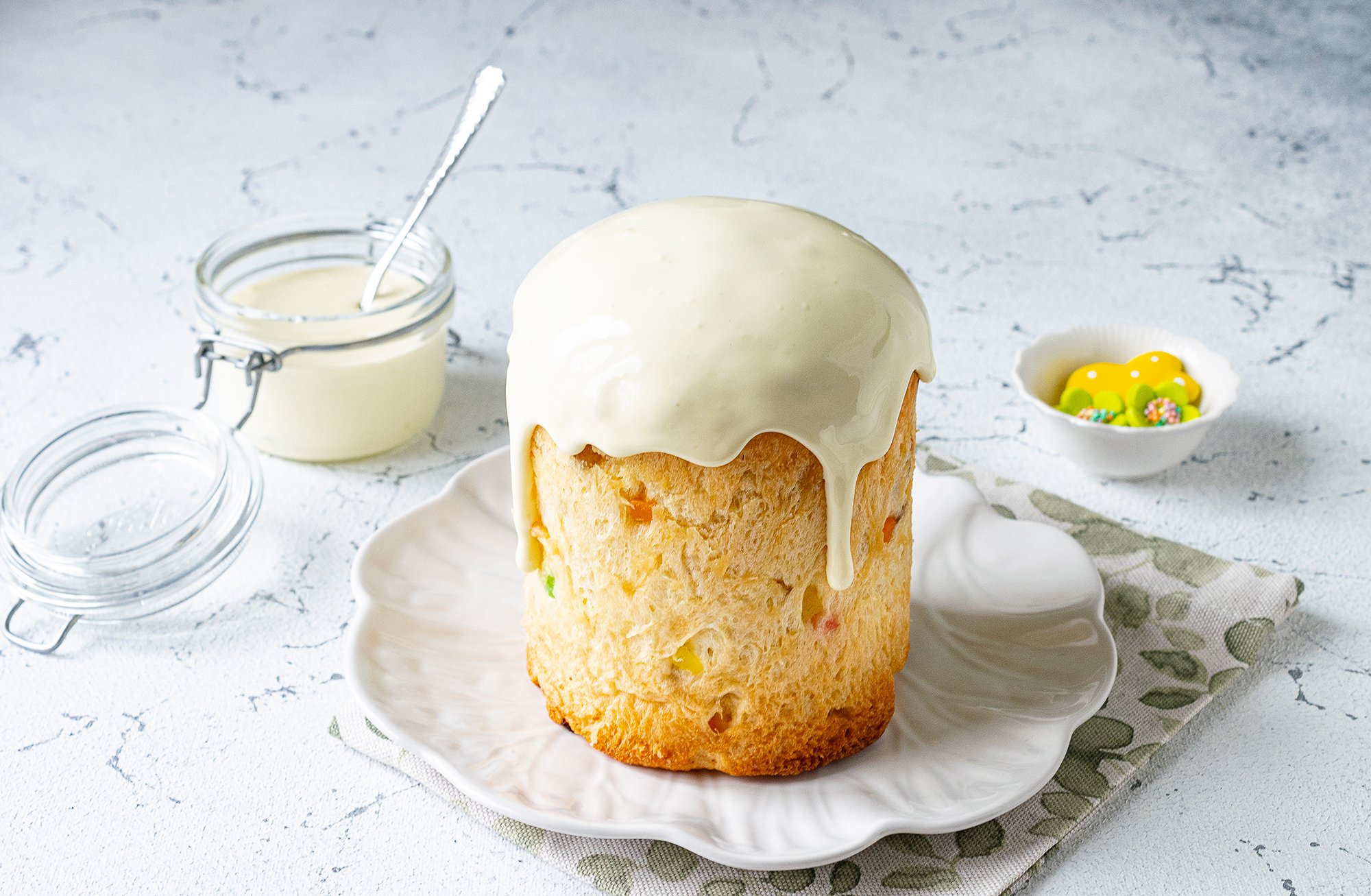 - Зберігай помадку для паски при кімнатній температурі у герметичному контейнері — до 12 годин. У холодильнику — до 3 днів. У морозильнику зберігати не рекомендується, оскільки глазур може розшаруватися після розморожування.