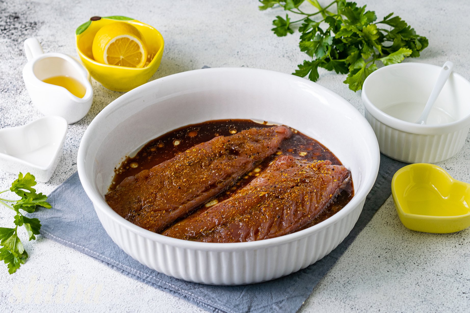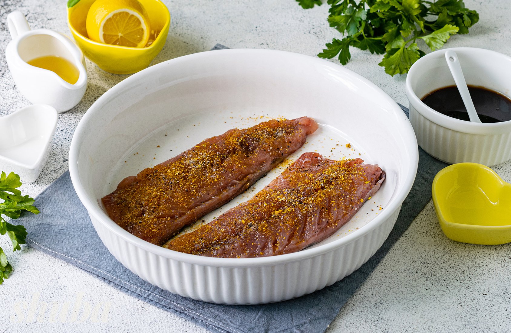 Рецепт простий та швидкий, ніжна риба буде готова вже через 6-8 хвилин! Звичайно, бажано попередньо замаринувати скумбрію, щоб вона просочилася ароматами спецій. Це можна зробити заздалегідь і зберігати рибу в контейнері в холодильнику. Так приготувати рибу можна й у гірчично-майонезному соусі.
