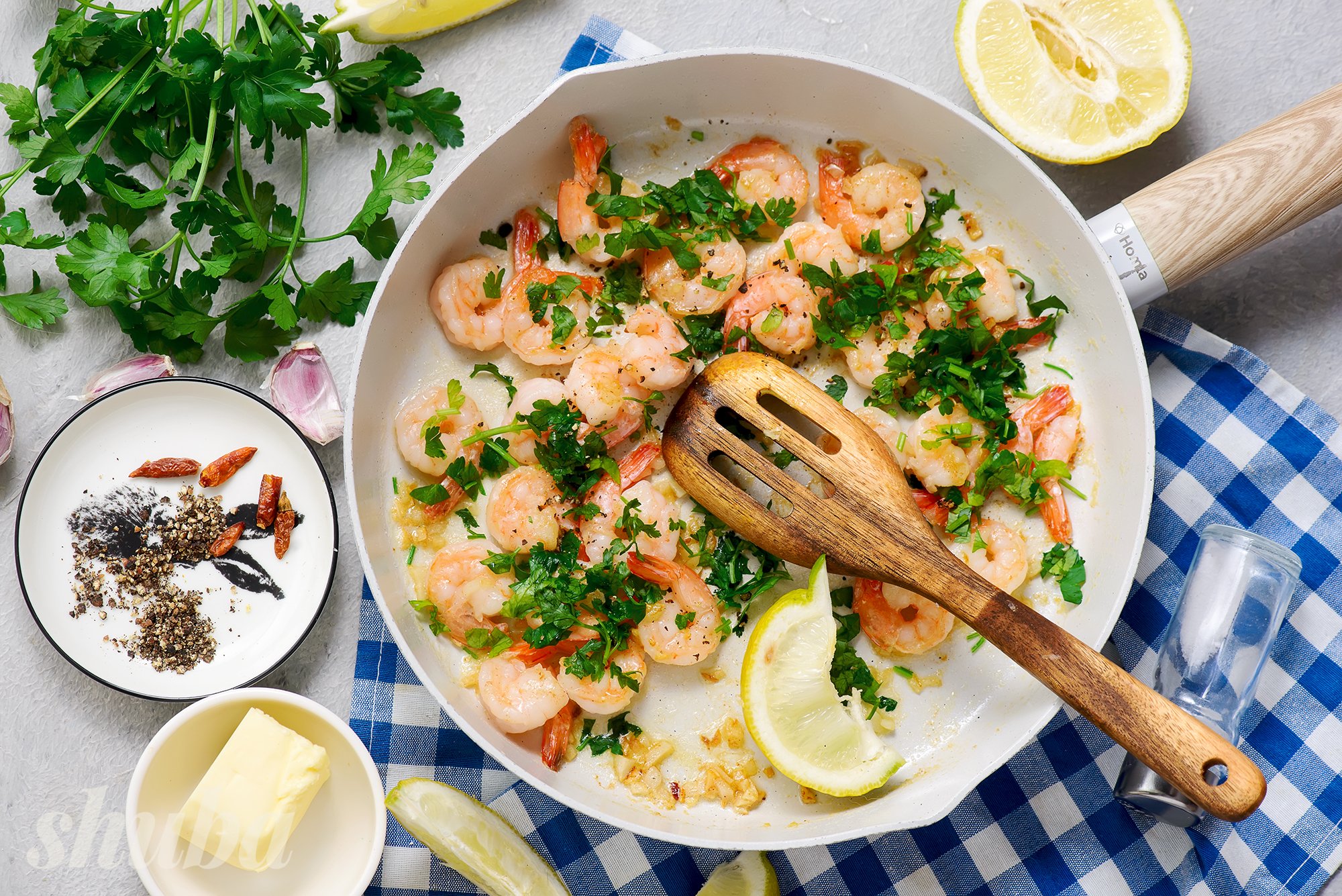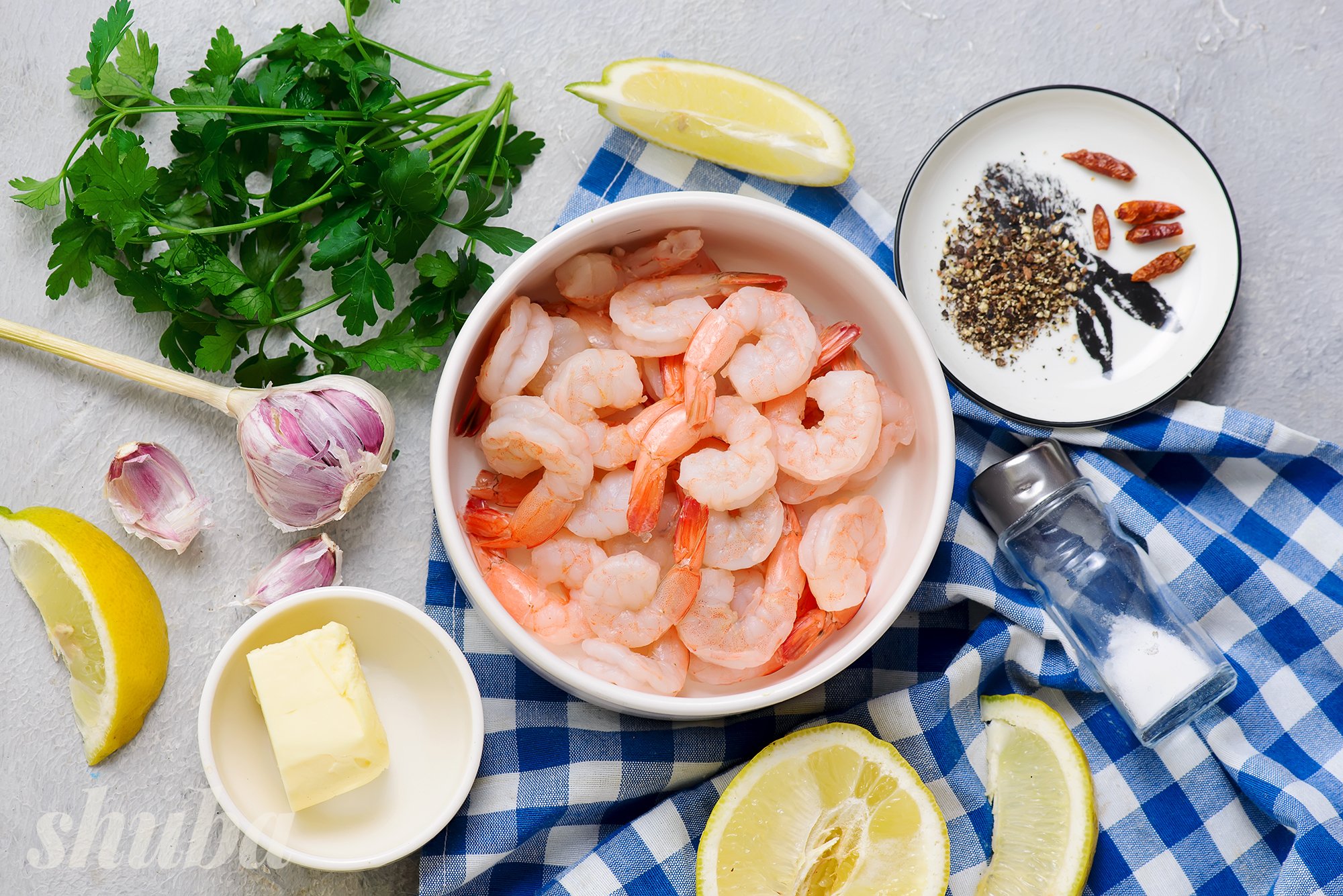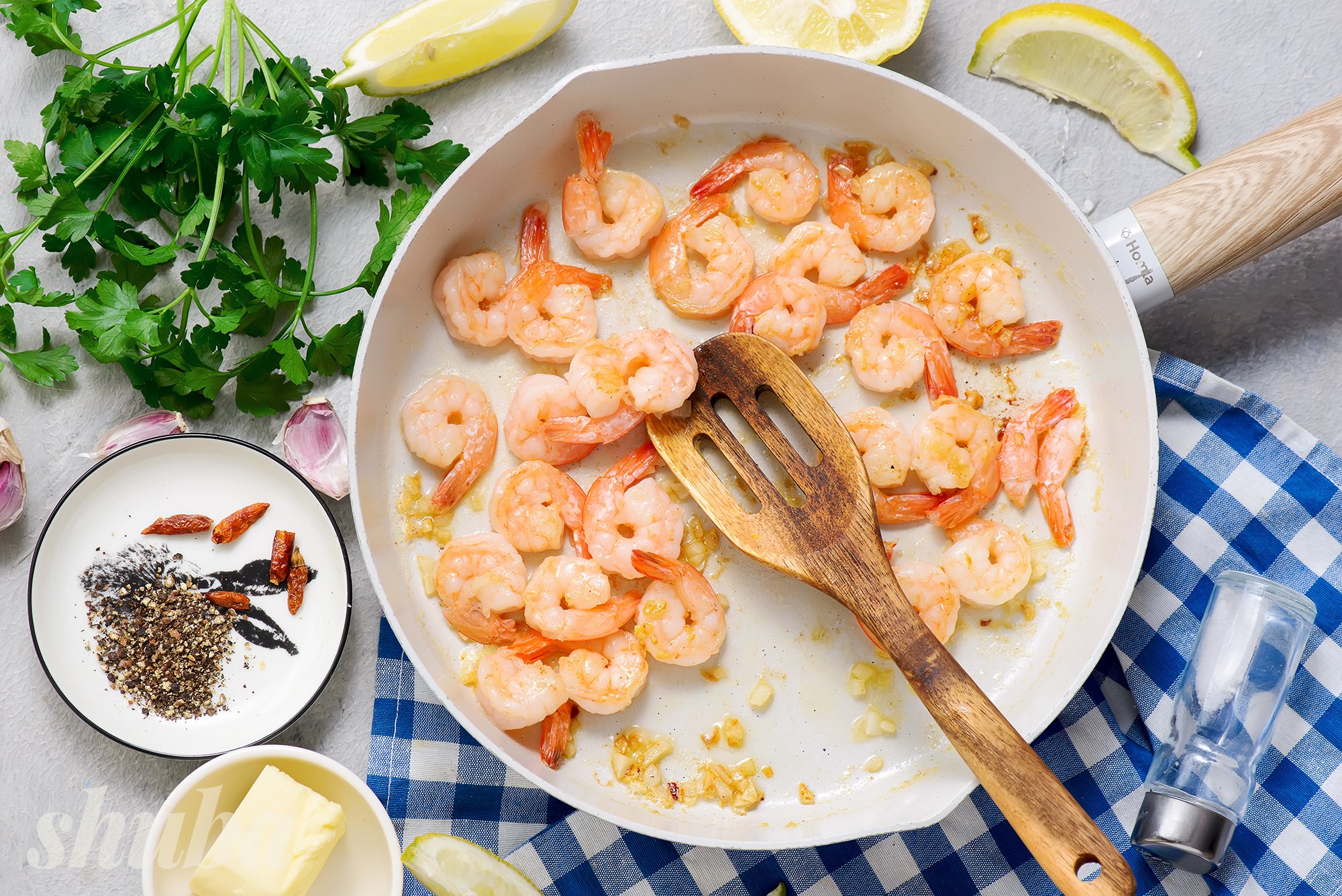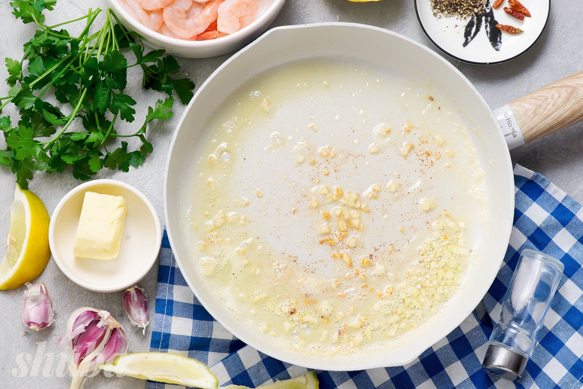 Інгредієнти для креветок на сковороді