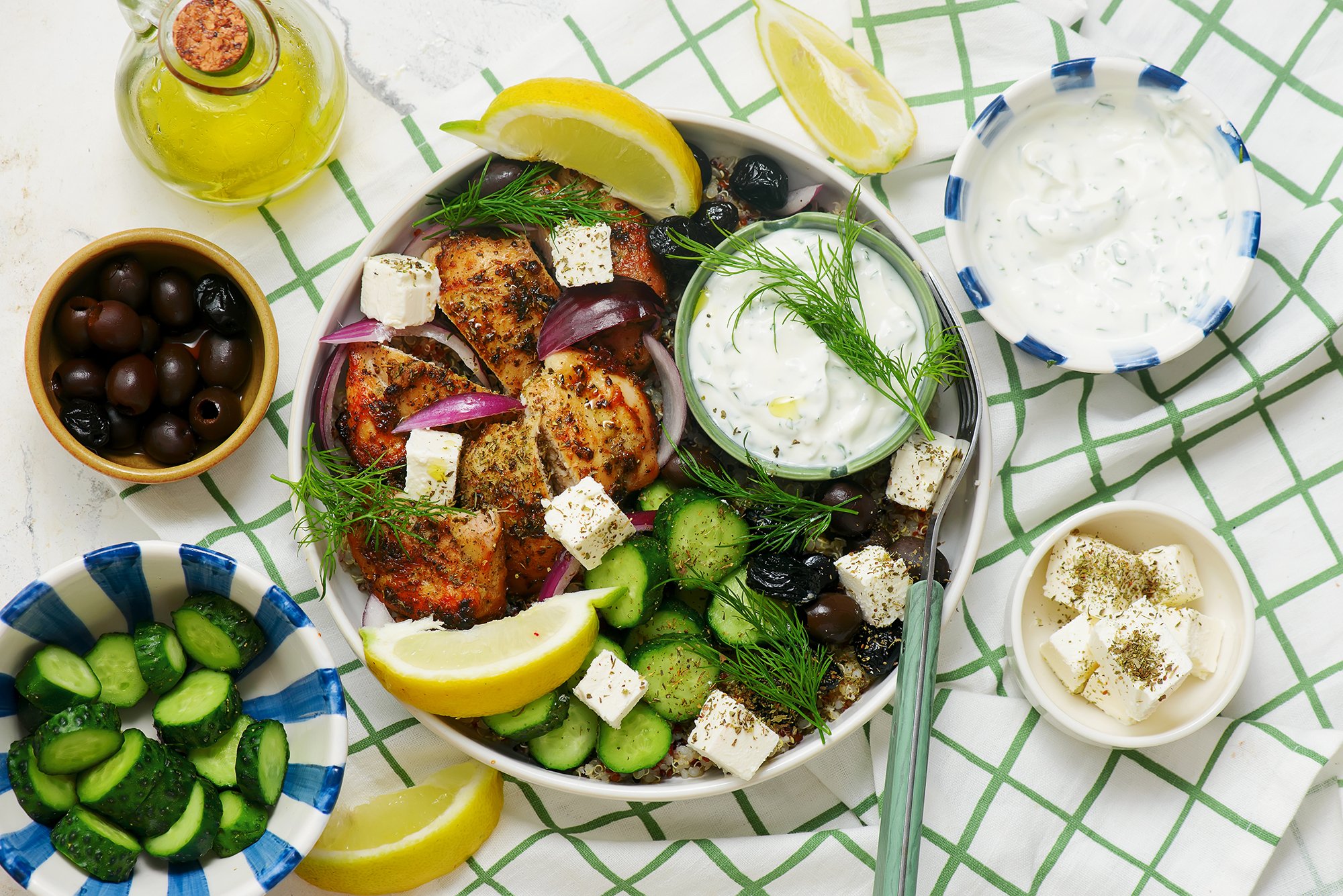 За що ми любимо боули, так це за те, що нічого не потрібно ускладнювати: просто приготуй інгредієнти та склади в миску. Вийде страва як у кафе, але дешевше і з урахуванням твого смаку. Спробуй боул з куркою, кіноа, овочами й фетою! Це збалансована страва, в якій зібрані не просто смачні, а ще й корисні інгредієнти.