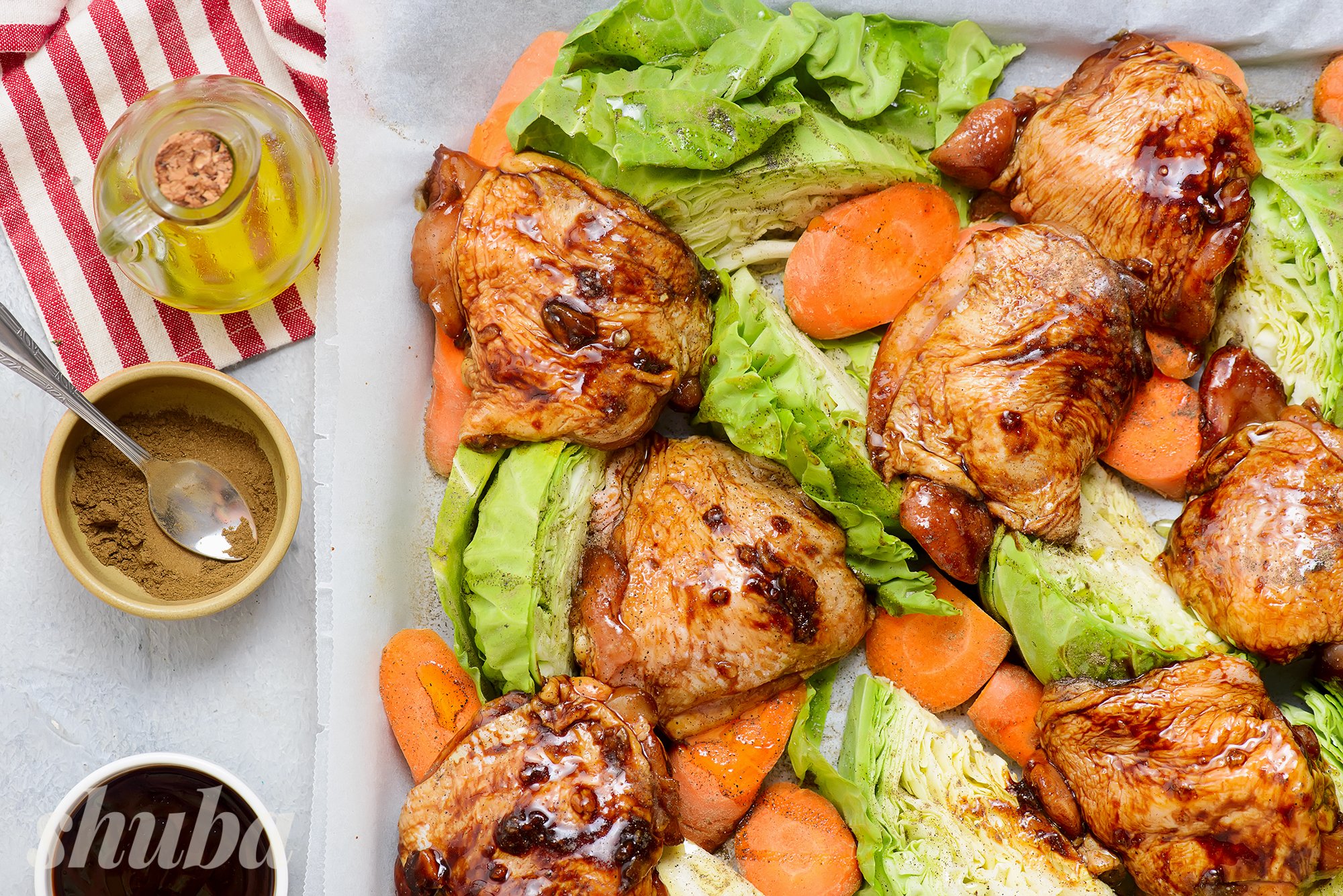 SHUBA не втомлюється підкидати ідеї для вечері: цього разу готуємо курку теріякі з овочами. Медово-соєвий соус наповнить м’ясо, молоду капусту та моркву пряно-солодким смаком. Готуйте курячі стегенця по-японськи та насолоджуйтесь самі або з друзями — страва розрахована на шість персон!
