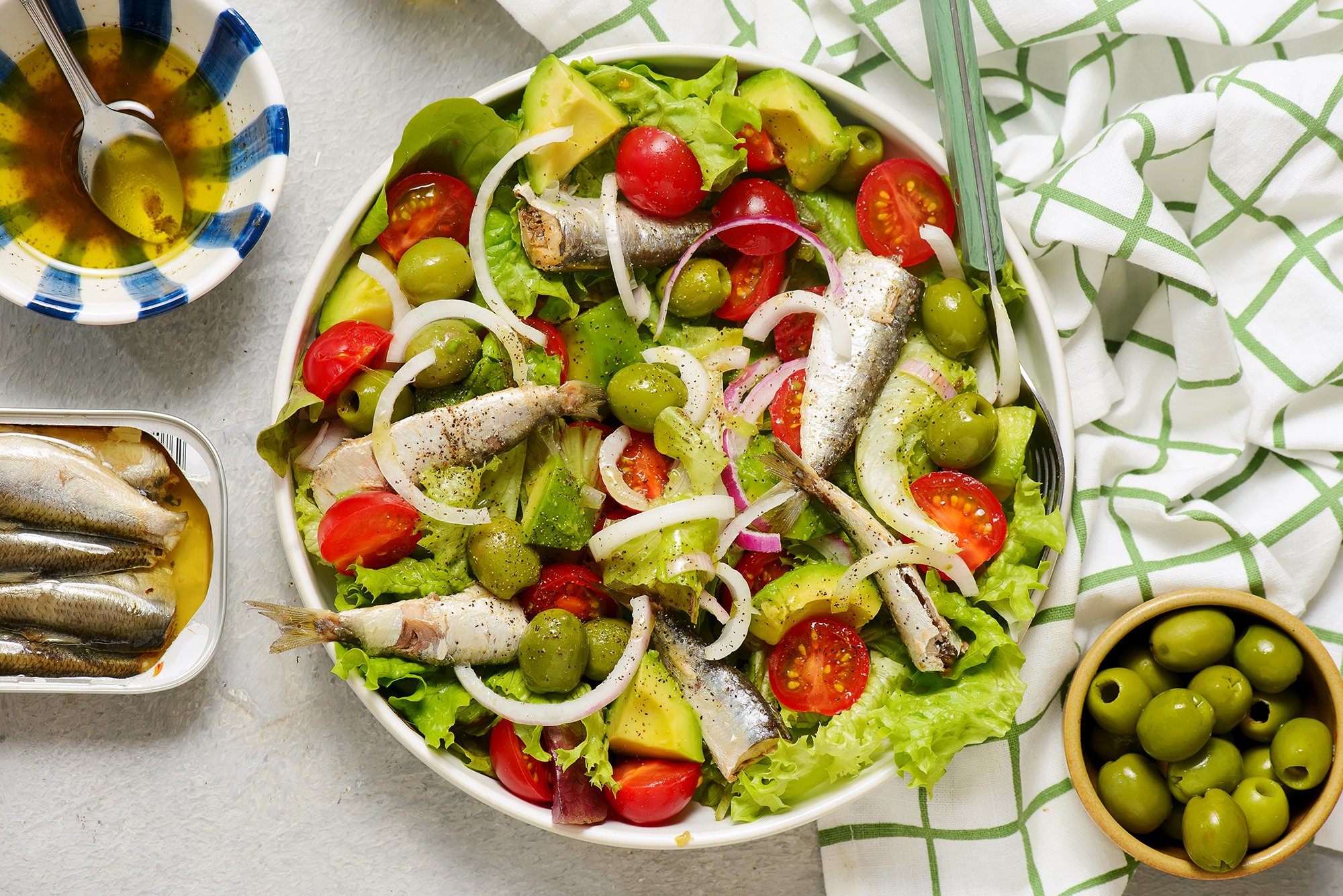 Салат із сардинами та овочами — це середземноморський рецепт, у якому використані прості продукти, доступні цілий рік. Завдяки консервованим сардинам страва готується максимально швидко.