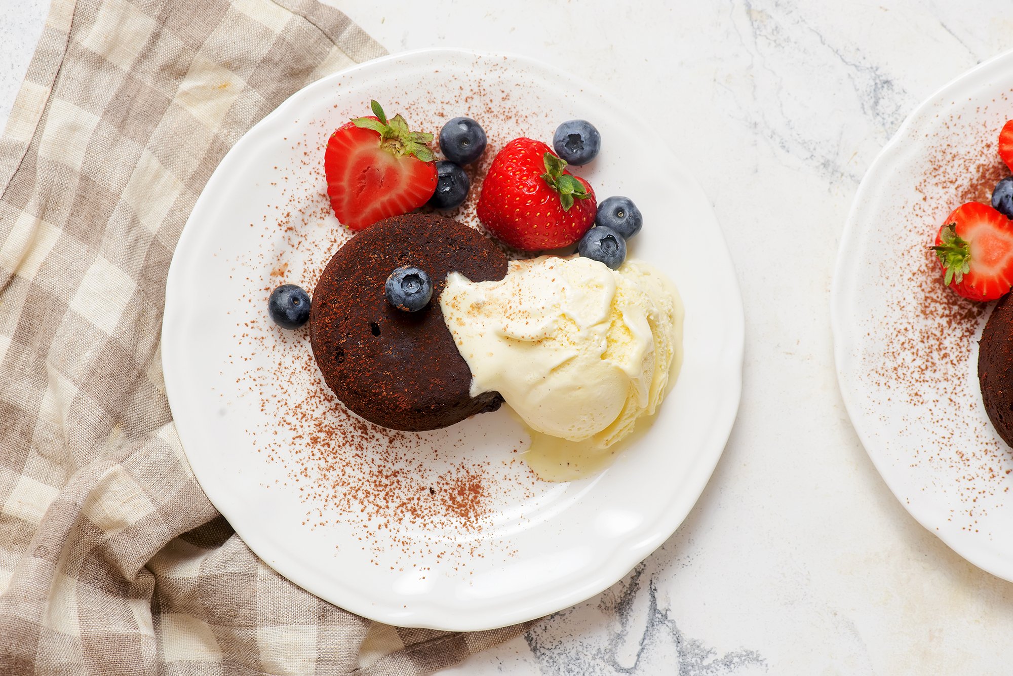 Фондан з морозивом — це шоколадний десерт із текучою начинкою, який подають гарячим разом із кулькою ванільного морозива. Класичний фондан готується швидко і не вимагає складних інгредієнтів. Такий формат шоколадної випічки підійде і для вечері з друзями, і для святкового десерту.