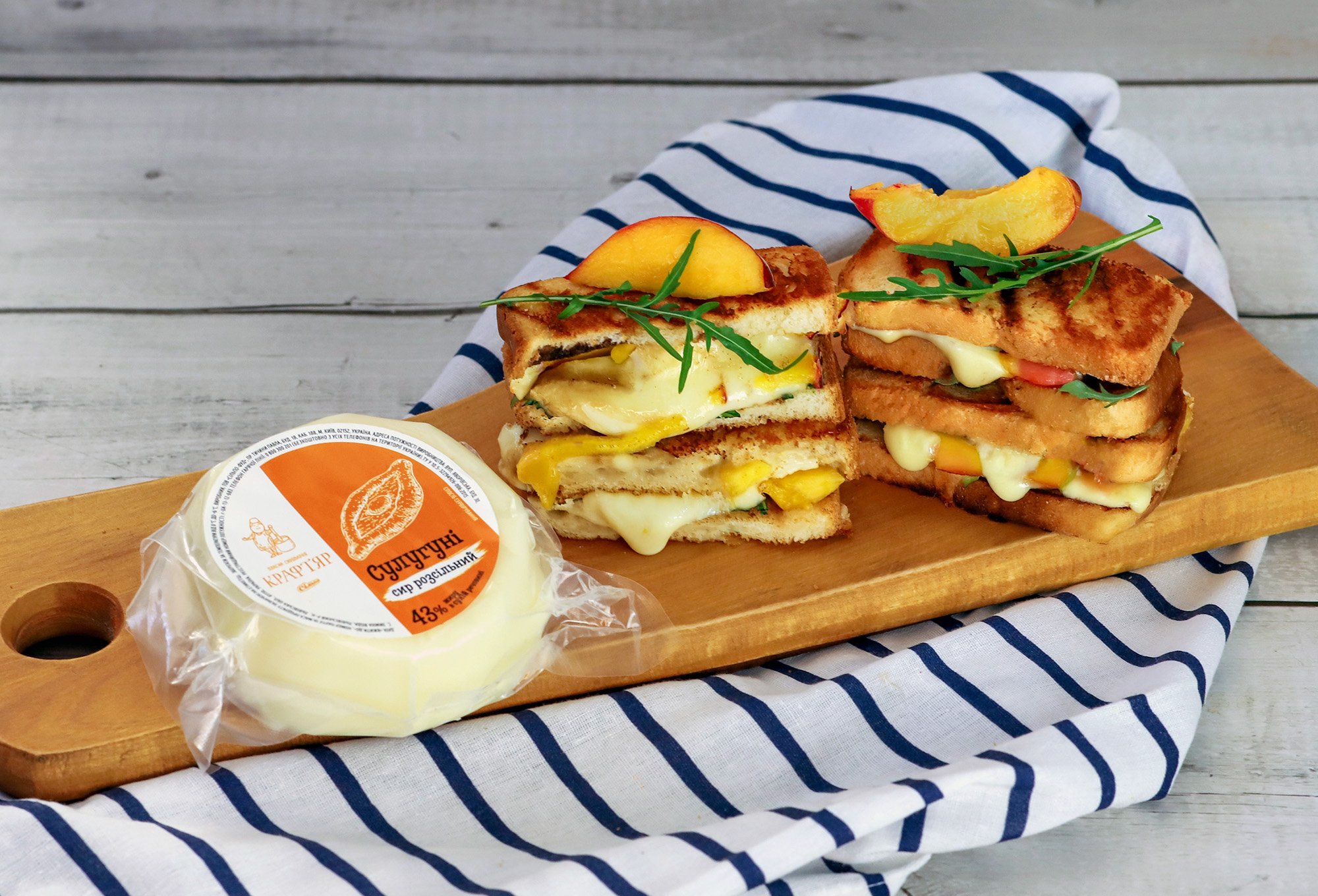 Рецепт сендвічів на грилі з сулугуні та персиками