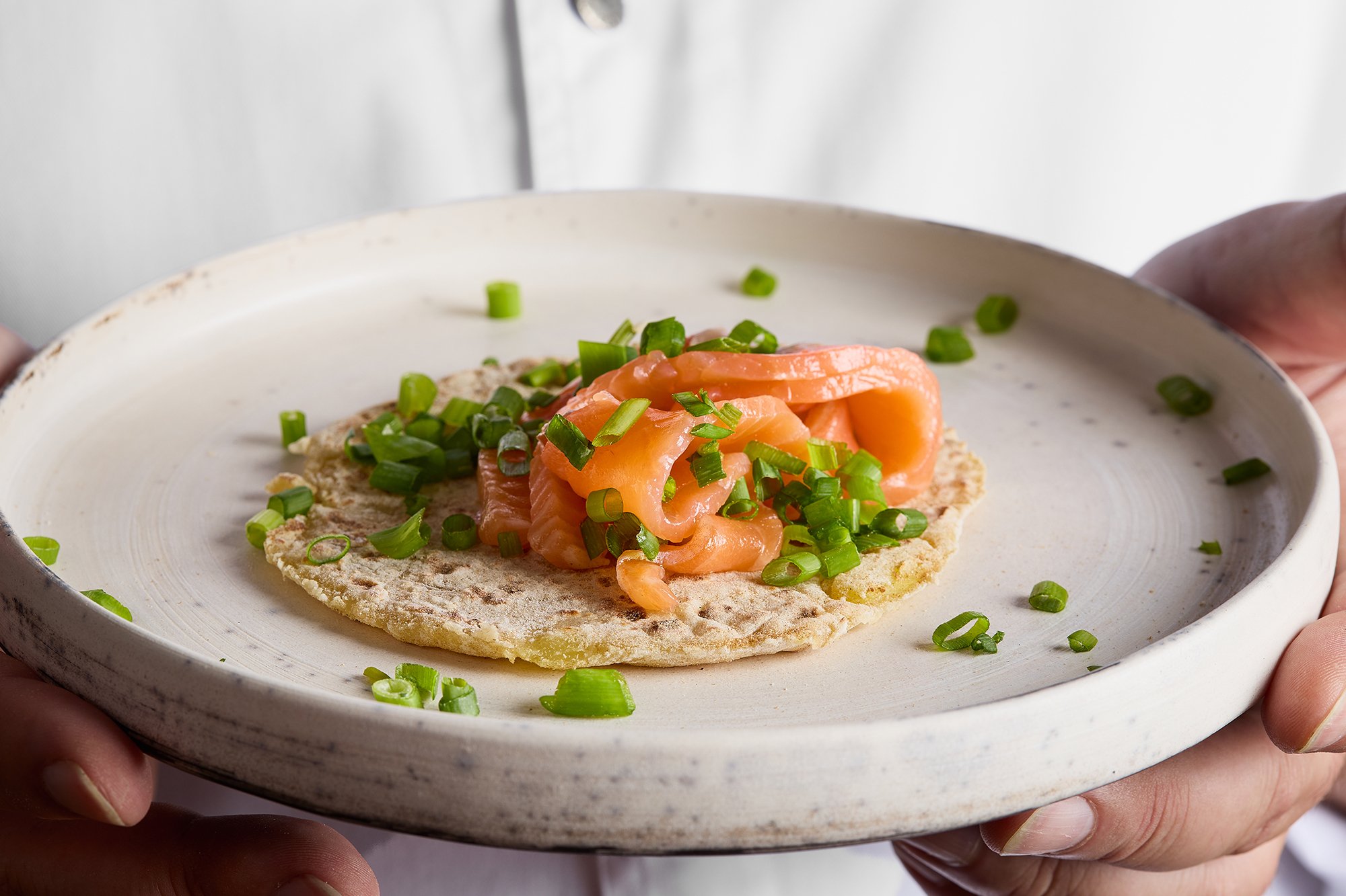 Норвезькі картопляні коржики з лососем — традиційна страва у сучасній подачі від шефа