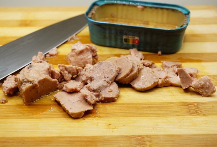 Я, особисто, для себе обрала ТМ «Премія». Вона дуже ніжна та без гіркуватісті. Зараз купую тільки таку печінку. Печінку нарізаємо слайсами.