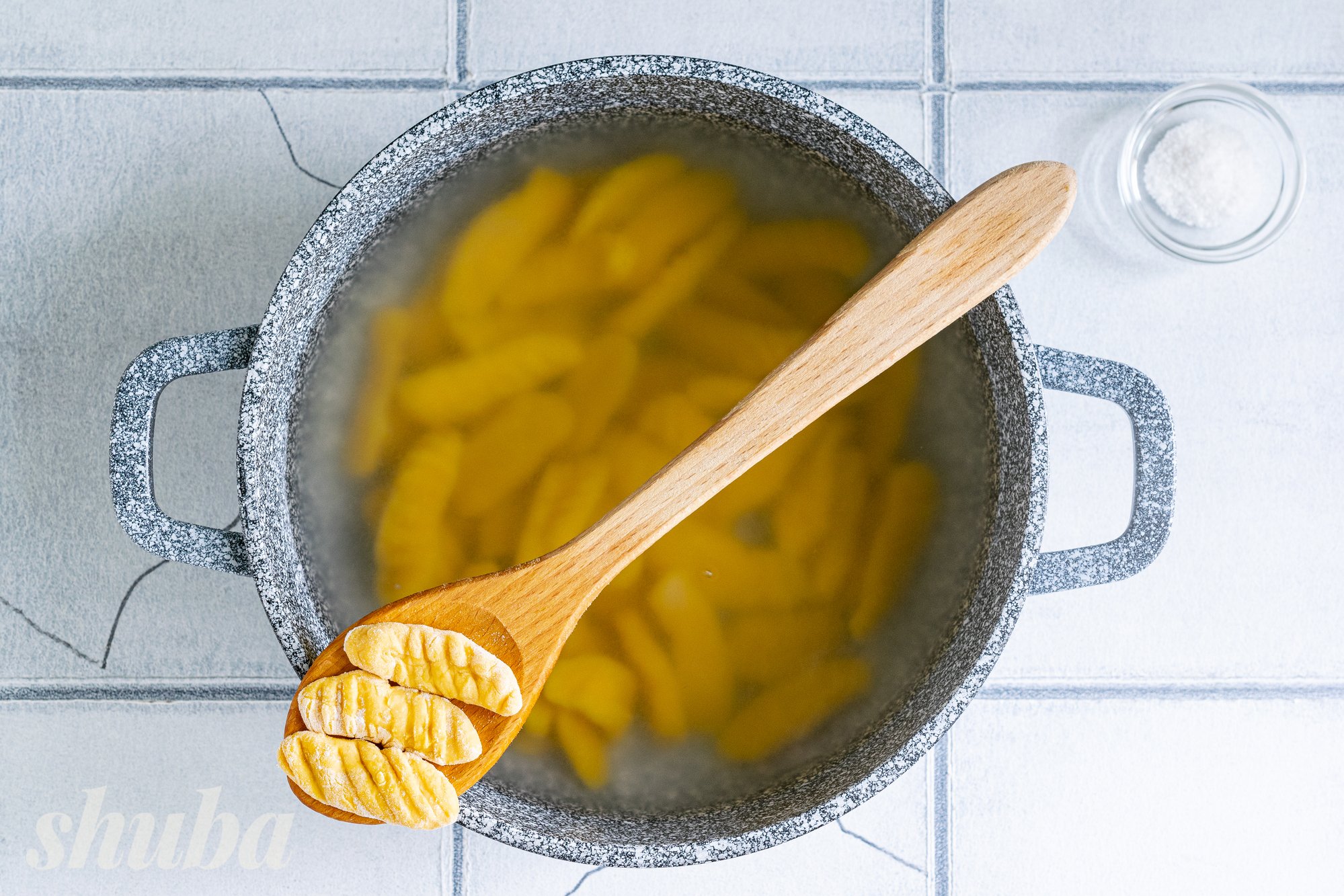 У каструлю з великою кількістю окропу акуратно опусти гарбузові ньокі. Після того, як вони спливуть на поверхню, провари їх протягом 5 хвилин.